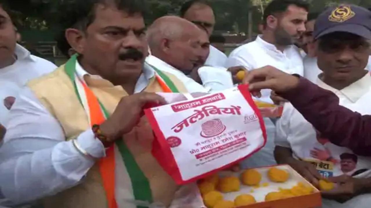 कांग्रेस को शुरुआती रुझान में बढ़त मिलने पर वर्करों ने बांटे लड्डू