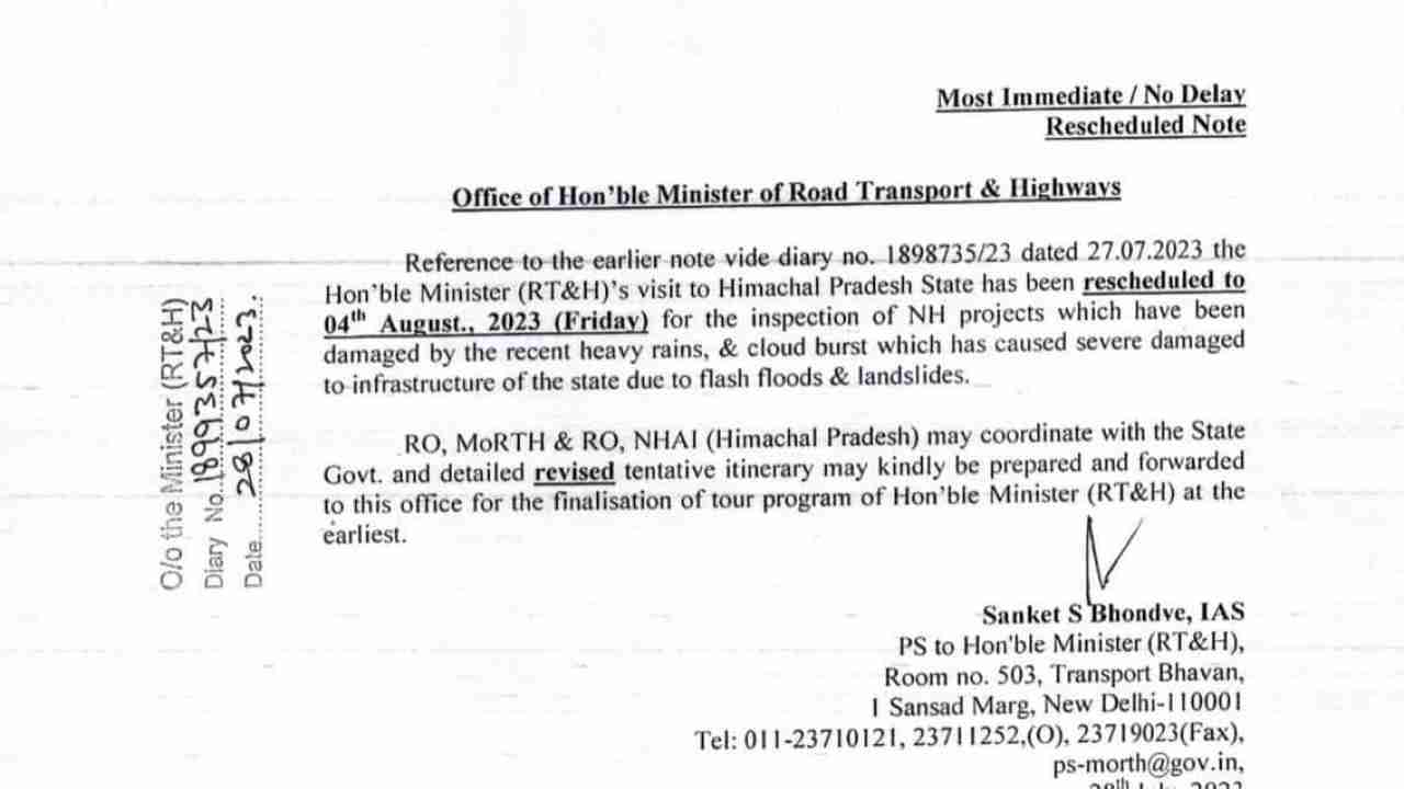Himachal : बारिश से तबाह हुई सड़कों का जायजा लेने कुल्लू - मनाली आ रहें हैं केंद्रीय मंत्री नितिन गडकरी