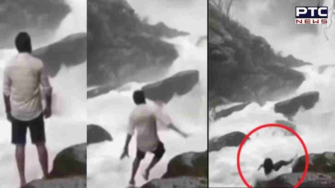 Viral video: रविवार शाम इंस्टाग्राम रील्स बनाते समय कर्नाटक के शिवमोग्गा के कोल्लूर के पास अरासिनागुंडी झरने में एक युवक बह गया। जब वह परफॉर्म कर रहा था तो इस घटना को उसके दोस्त ने कैमरे में कैद कर लिया जो शूटिंग कर रहा था।
