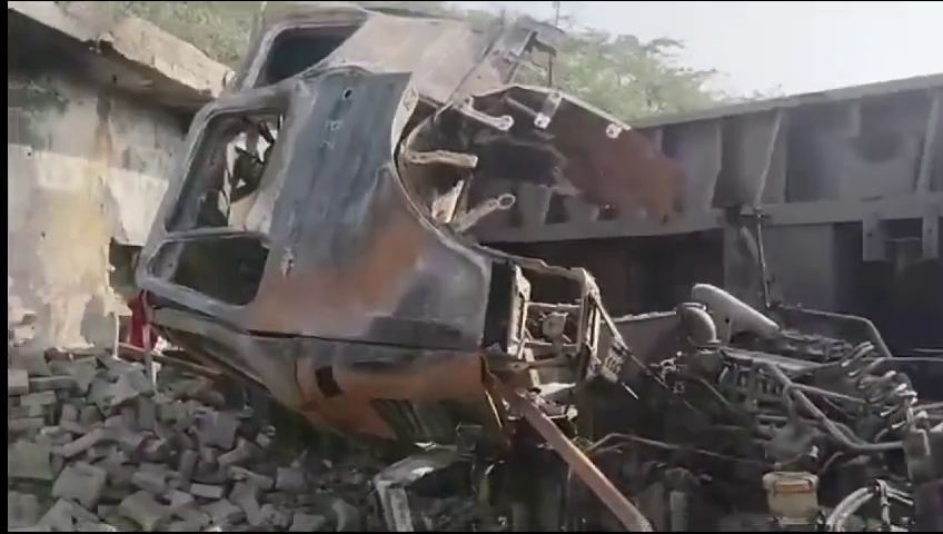 बिजली के पोल से टकराया ट्रॉला, ड्राइवर की मौके पर मौत, एक कार भी जलकर हुई ख़ाक !