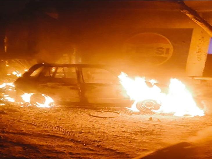ट्रॉला में आग लगने से पास में ही खड़ी एक कारण में भी आग लग गई। गनीमत