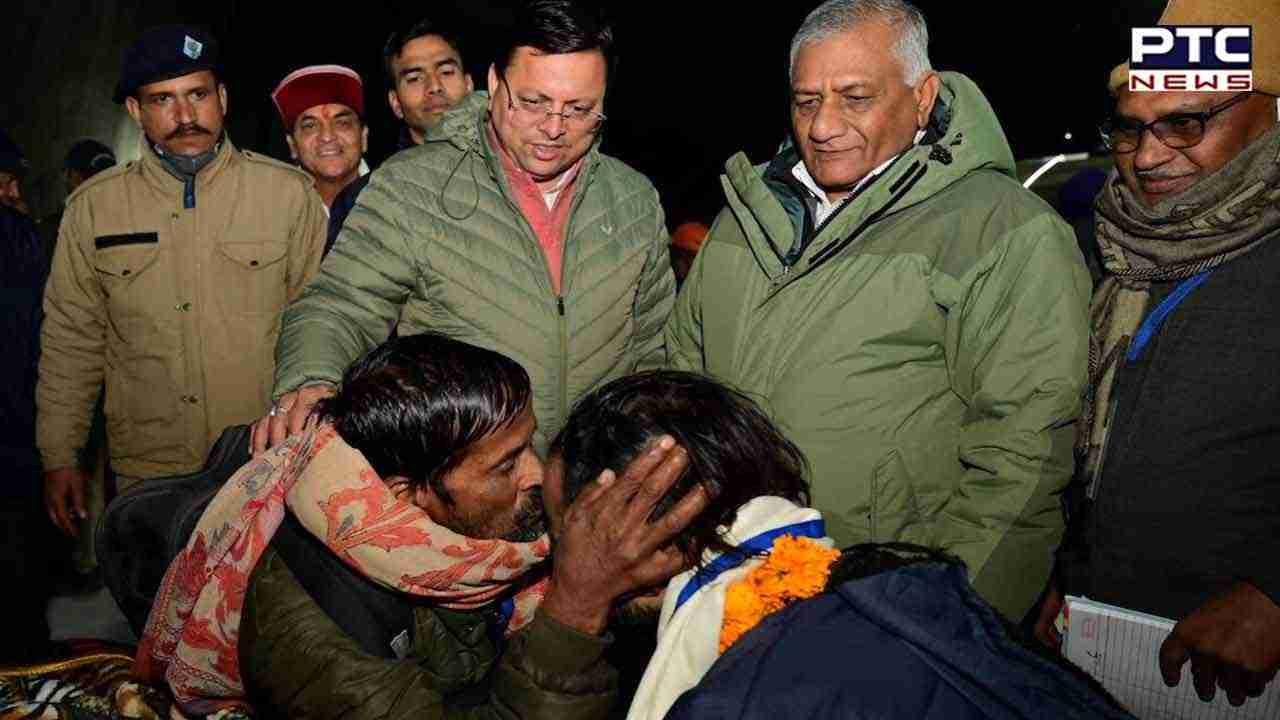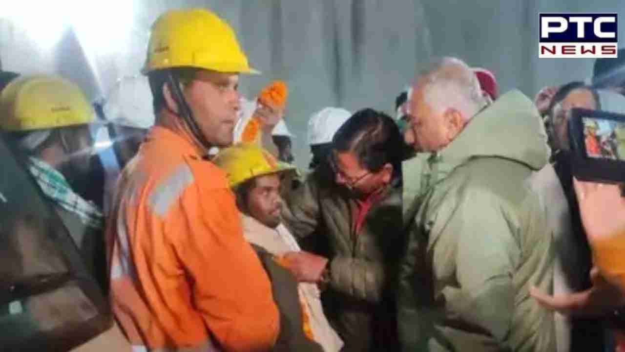 - Uttarakhand Chief Minister Pushkar Singh Dhami and Union Minister of State General (Retd) VK Singh welcomed rescued workers with garlands and shawls as they breathed fresh air after 17 days.
