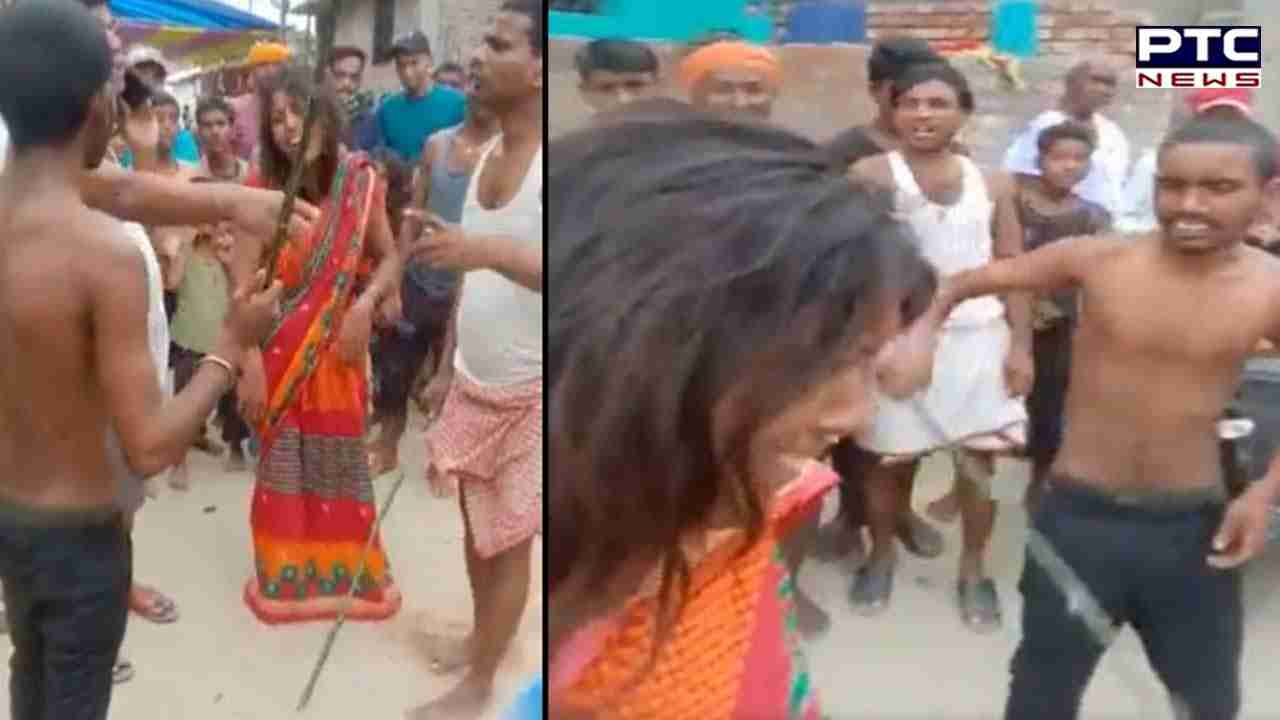 In a brutal video from Bihar which is doing rounds on Internet shows a group of men hitting a woman.