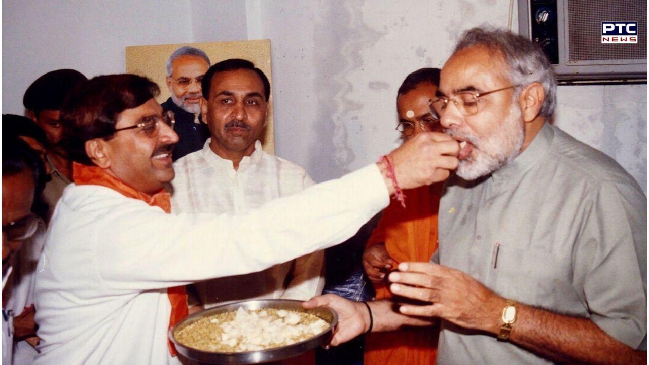 Old photographs of Prime Minister Narendra Modi and former Gujarat Chief Minister Vijay Rupani have gone viral on social media. The caption accompanying the photos read, “Shoulder to shoulder for decades,” highlighting their long-standing political association. The images appear to be from various points in the past, reflecting the journey of both leaders over the years.