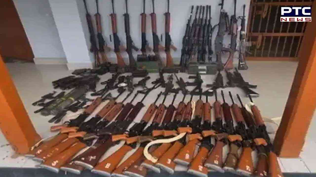Among the surrendered weapons include SLR 29, Carbine, AK, INSAS Rifle, INSAS LMG, .303 Rifle, 9mm pistol, .32 pistol, M16 rifle, smoke gun and tear gas, local made pistol, stan gun, modified rifle, JVP and a grenade launcher, the Manipur Police said.