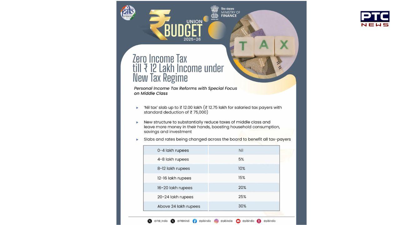Union Budget 2025: Massive relief for middle class, no income tax payable up to Rs 12 lakh