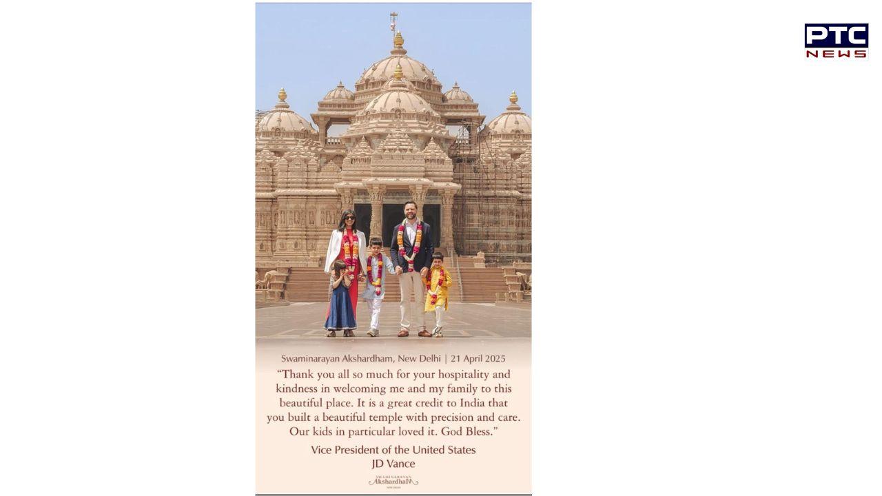 US Vice President JD Vance expressed heartfelt gratitude to the Akshardham Temple administration for their warm hospitality during his visit.