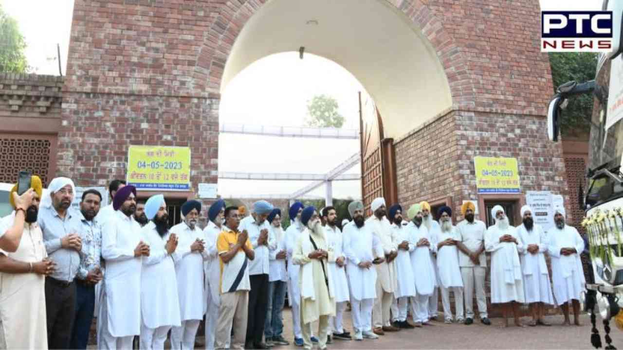 ਸਰਦਾਰ ਪ੍ਰਕਾਸ਼ ਸਿੰਘ ਬਾਦਲ ਜੀ ਦੇ ਫੁੱਲਾਂ ਨੂੰ ਸ੍ਰੀ ਕੀਰਤਪੁਰ ਸਾਹਿਬ ਜਲ੍ਹ ਪਰਵਾਹ ਕਰਨ ਲਈ ਬੱਸ ਤੋਰਨ ਤੋਂ ਪਹਿਲਾਂ ਅਕਾਲ ਪੁਰਖ ਵਾਹਿਗੁਰੂ ਜੀ ਦੇ ਚਰਨਾਂ 'ਚ ਅਰਦਾਸ ਕਰਦਾ ਬਾਦਲ ਪਰਿਵਾਰ, ਰਿਸ਼ਤੇਦਾਰ ਅਤੇ ਸਕੇ ਸਬੰਧੀ