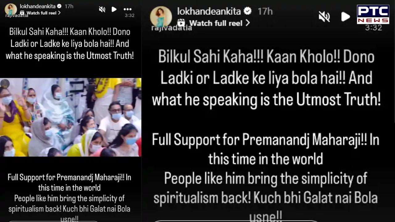 Ankita Lokhande Support Premananda Maharaj : ਅੰਕਿਤਾ ਨੇ ਰਾਜੀਵ ਆਦਿਤਿਆ ਦੀ ਪੋਸਟ ਨੂੰ ਦੁਬਾਰਾ ਪੋਸਟ ਕੀਤਾ ਹੈ, ਜਿਸ ਵਿੱਚ ਲਿਖਿਆ ਹੈ, ''ਉਨ੍ਹਾਂ ਨੇ ਬਿਲਕੁਲ ਸਹੀ ਕਿਹਾ, ਆਪਣੇ ਕੰਨ ਖੋਲ੍ਹੋ, ਉਨ੍ਹਾਂ ਨੇ ਕੁੜੀ ਅਤੇ ਮੁੰਡੇ ਦੋਵਾਂ ਨੂੰ ਕਿਹਾ ਹੈ ਅਤੇ ਉਨ੍ਹਾਂ ਨੇ ਜੋ ਕਿਹਾ ਹੈ ਉਹ ਪੂਰੀ ਤਰ੍ਹਾਂ ਸੱਚ ਹੈ। ਪ੍ਰੇਮਾਨੰਦ ਮਹਾਰਾਜ ਜੀ ਨੂੰ ਪੂਰਾ ਸਮਰਥਨ ਹੈ।''