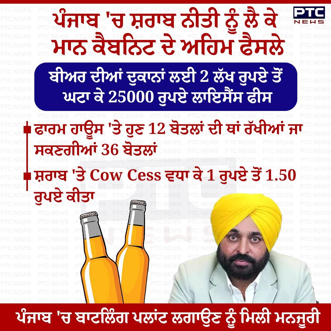 Punjab liquor policy : ਸ਼ਰਾਬ ਨੀਤੀ ਨੂੰ ਲੈ ਕੇ ਮਾਨ ਕੈਬਨਿਟ ਦੇ ਅਹਿਮ ਫੈਸਲੇ, BEER Shops ਲਈ ਸਸਤੇ ਲਾਇਸੈਂਸ ਤੋਂ ਵਧੇ ਗਊ ਸੈੱਸ ਤੱਕ ਜਾਣੋ ਸਭ ਕੁੱਝ