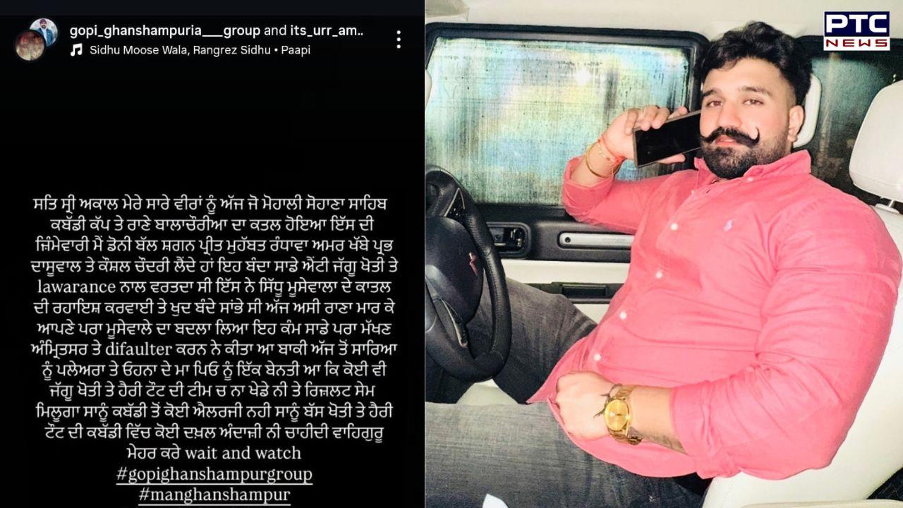 Kabbadi Player Rana Balachauria : ਮੋਹਾਲੀ ਦੇ ਸੋਹਾਣਾ (Sohana Kabbadi Cup Murder) 'ਚ ਕਬੱਡੀ ਟੂਰਨਾਮੈਂਟ ਦੌਰਾਨ ਕਤਲ ਕੀਤੇ ਗਏ ਕਬੱਡੀ ਖਿਡਾਰੀ ਤੇ ਪ੍ਰਮੋਟਰ ਰਾਣਾ ਬਲਾਚੌਰੀਆ ਦੇ ਕਤਲ ਮਾਮਲੇ 'ਚ ਵੱਡਾ ਮੋੜ ਸਾਹਮਣੇ ਆਇਆ ਹੈ। ਗੈਂਗਸਟਰ ਡੋਨੀ ਬੱਲ (Gangster Doni Bal) ਨੇ ਇੱਕ ਕਥਿਤ ਪੋਸਟ ਰਾਹੀਂ ਇਸ ਕਤਲ ਦੀ ਜ਼ਿੰਮੇਵਾਰੀ ਲਈ ਹੈ, ਜਿਸ ਰਾਹੀਂ ਉਸ ਨੇ ਮਰਹੂਮ ਪੰਜਾਬੀ ਗਾਇਕ ਸਿੱਧੂ ਮੂਸੇਵਾਲਾ (Sidhu Moosewala Murder Case) ਦੇ ਕਤਲ ਦਾ ਬਦਲਾ ਲੈਣ ਦਾ ਦਾਅਵਾ ਕੀਤਾ ਹੈ। ਹਾਲਾਂਕਿ, ਪੀਟੀਸੀ ਨਿਊਜ਼ ਇਸ ਪੋਸਟ ਦੇ ਪੁਖਤਾ ਹੋਣ ਦੀ ਪੁਸ਼ਟੀ ਨਹੀਂ ਕਰਦਾ ਹੈ।