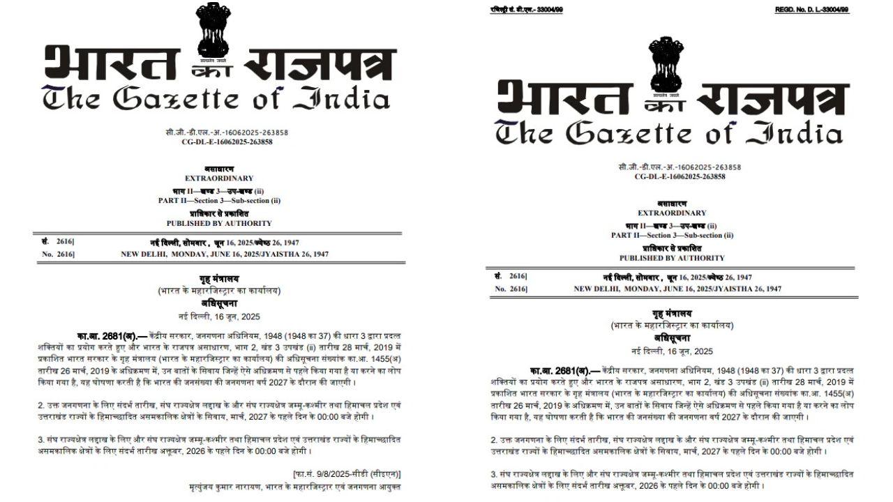 16th Census of India : ਕੇਂਦਰੀ ਗ੍ਰਹਿ ਮੰਤਰਾਲੇ ਨੇ ਭਾਰਤ ਦੀ 16ਵੀਂ ਜਨਗਣਨਾ ਲਈ ਨੋਟੀਫਿਕੇਸ਼ਨ (Census Notification) ਜਾਰੀ ਕੀਤਾ ਹੈ। ਸਾਲ 2011 ਤੋਂ ਬਾਅਦ ਦੇਸ਼ ਵਿੱਚ ਹੋਣ ਵਾਲੀ ਜਨਗਣਨਾ 2027 (Census 2027) ਲਈ ਅੱਜ ਇੱਕ ਨੋਟੀਫਿਕੇਸ਼ਨ ਜਾਰੀ ਕੀਤਾ ਗਿਆ। ਇਸ ਤੋਂ ਪਹਿਲਾਂ ਕੱਲ੍ਹ, ਕੇਂਦਰੀ ਗ੍ਰਹਿ ਮੰਤਰੀ ਅਮਿਤ ਸ਼ਾਹ (Amit Shah) ਨੇ ਕੇਂਦਰੀ ਗ੍ਰਹਿ ਸਕੱਤਰ ਗੋਵਿੰਦ ਮੋਹਨ, ਰਜਿਸਟਰਾਰ ਜਨਰਲ ਅਤੇ ਜਨਗਣਨਾ ਕਮਿਸ਼ਨਰ ਸਮੇਤ ਹੋਰ ਸੀਨੀਅਰ ਅਧਿਕਾਰੀਆਂ ਨਾਲ ਆਉਣ ਵਾਲੀ ਜਨਗਣਨਾ ਦੀਆਂ ਤਿਆਰੀਆਂ ਦਾ ਜਾਇਜ਼ਾ ਵੀ ਲਿਆ ਸੀ।