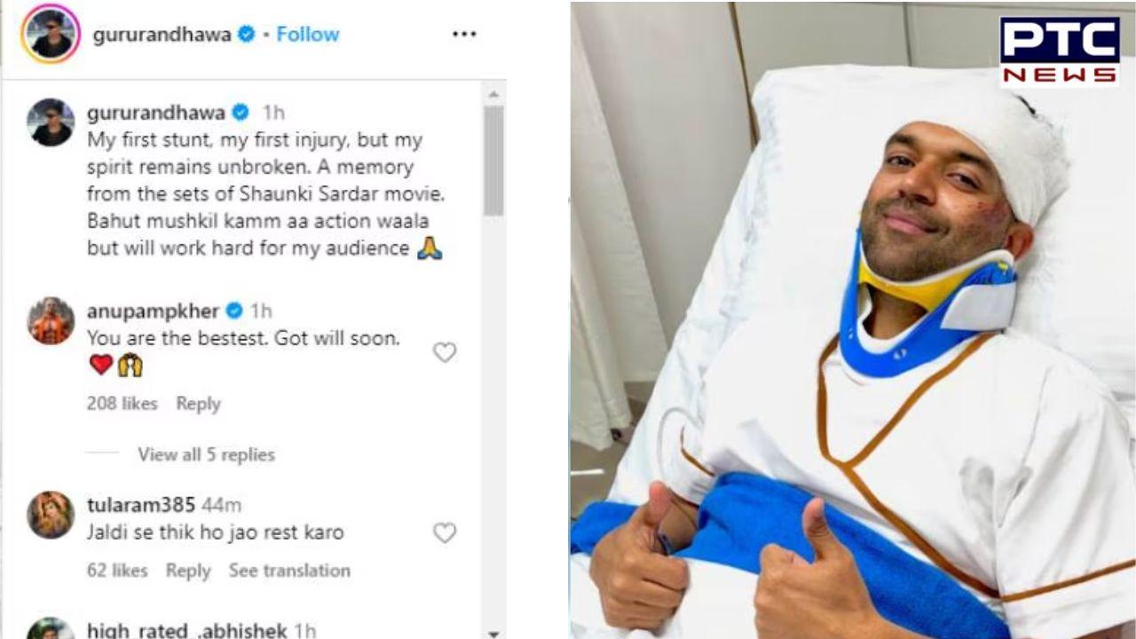ਇਸ ਤਸਵੀਰ ਨੂੰ ਸ਼ੇਅਰ ਕਰਦੇ ਹੋਏ ਗੁਰੂ ਰੰਧਾਵਾ ਨੇ ਕਿਹਾ ਕਿ ਇਹ ਉਨ੍ਹਾਂ ਦਾ ਪਹਿਲਾ ਐਕਸ਼ਨ ਸਟੰਟ ਸੀ। ਇੰਸਟਾਗ੍ਰਾਮ 'ਤੇ ਤਸਵੀਰ ਸ਼ੇਅਰ ਕਰਦੇ ਹੋਏ ਉਨ੍ਹਾਂ ਨੇ ਲਿਖਿਆ, ''ਮੇਰਾ ਪਹਿਲਾ ਸਟੰਟ, ਮੇਰੀ ਪਹਿਲੀ ਸੱਟ, ਪਰ ਮੇਰਾ ਹੌਸਲਾ ਬਰਕਰਾਰ ਹੈ। ਫਿਲਮ 'ਸ਼ੌਂਕੀ ਸਰਦਾਰ' ਦੇ ਸੈੱਟ ਤੋਂ ਇੱਕ ਯਾਦ। ਐਕਸ਼ਨ ਬਹੁਤ ਮੁਸ਼ਕਲ ਕੰਮ ਹੈ, ਪਰ ਮੈਂ ਆਪਣੇ ਦਰਸ਼ਕਾਂ ਲਈ ਸਖ਼ਤ ਮਿਹਨਤ ਕਰਾਂਗਾ।