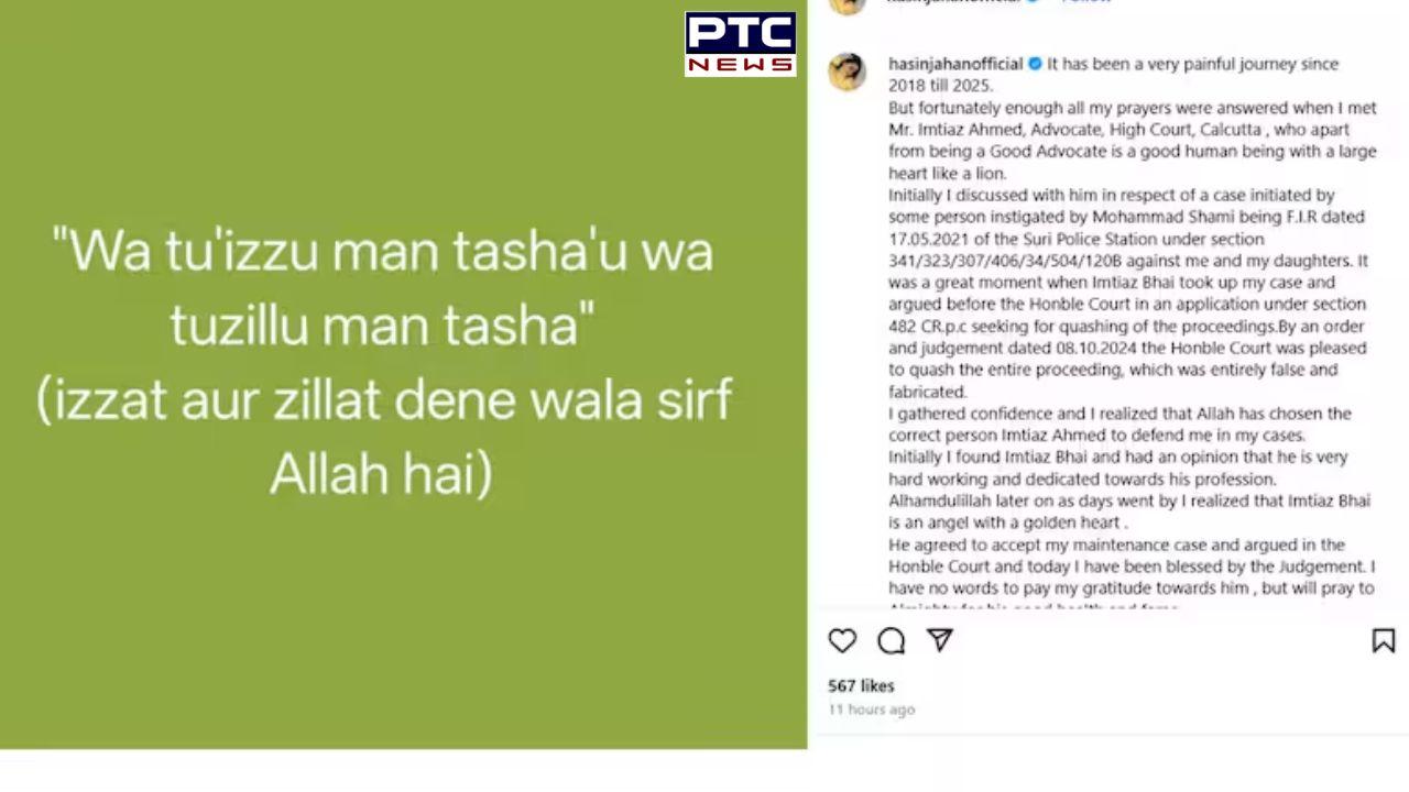 ਹਸੀਨ ਜਹਾਂ ਨੇ ਇੱਕ ਲੰਮੀ ਪੋਸਟ ਲਿਖੀ- 'ਜਿਸ ਵਿੱਚ ਉਸਨੇ ਕ੍ਰਿਕਟਰ ਸ਼ਮੀ ਵੱਲੋਂ ਦਾਇਰ ਕੀਤੀ ਗਈ FIR ਦਾ ਜ਼ਿਕਰ ਕੀਤਾ ਅਤੇ ਇਹ ਵੀ ਦੱਸਿਆ ਕਿ ਉਸਦੇ ਵਕੀਲ ਨੇ ਉਸਦੀ ਕਿਵੇਂ ਮਦਦ ਕੀਤੀ। ਅਦਾਕਾਰਾ ਅਤੇ ਮਾਡਲ ਹਸੀਨ ਜਹਾਂ ਨੇ ਲਿਖਿਆ- '2018 ਤੋਂ 2025 ਤੱਕ ਦਾ ਸਫ਼ਰ ਬਹੁਤ ਦਰਦਨਾਕ ਰਿਹਾ ਹੈ। ਪਰ ਖੁਸ਼ਕਿਸਮਤੀ ਨਾਲ ਮੇਰੀਆਂ ਸਾਰੀਆਂ ਪ੍ਰਾਰਥਨਾਵਾਂ ਦਾ ਜਵਾਬ ਉਦੋਂ ਮਿਲਿਆ ਜਦੋਂ ਮੈਂ ਇਮਤਿਆਜ਼ ਅਹਿਮਦ, ਐਡਵੋਕੇਟ, ਹਾਈ ਕੋਰਟ, ਕਲਕੱਤਾ ਨੂੰ ਮਿਲਿਆ, ਜੋ ਇੱਕ ਚੰਗੇ ਵਕੀਲ ਹੋਣ ਦੇ ਨਾਲ-ਨਾਲ ਇੱਕ ਵੱਡੇ ਦਿਲ ਵਾਲੇ ਚੰਗੇ ਇਨਸਾਨ ਵੀ ਹਨ।
