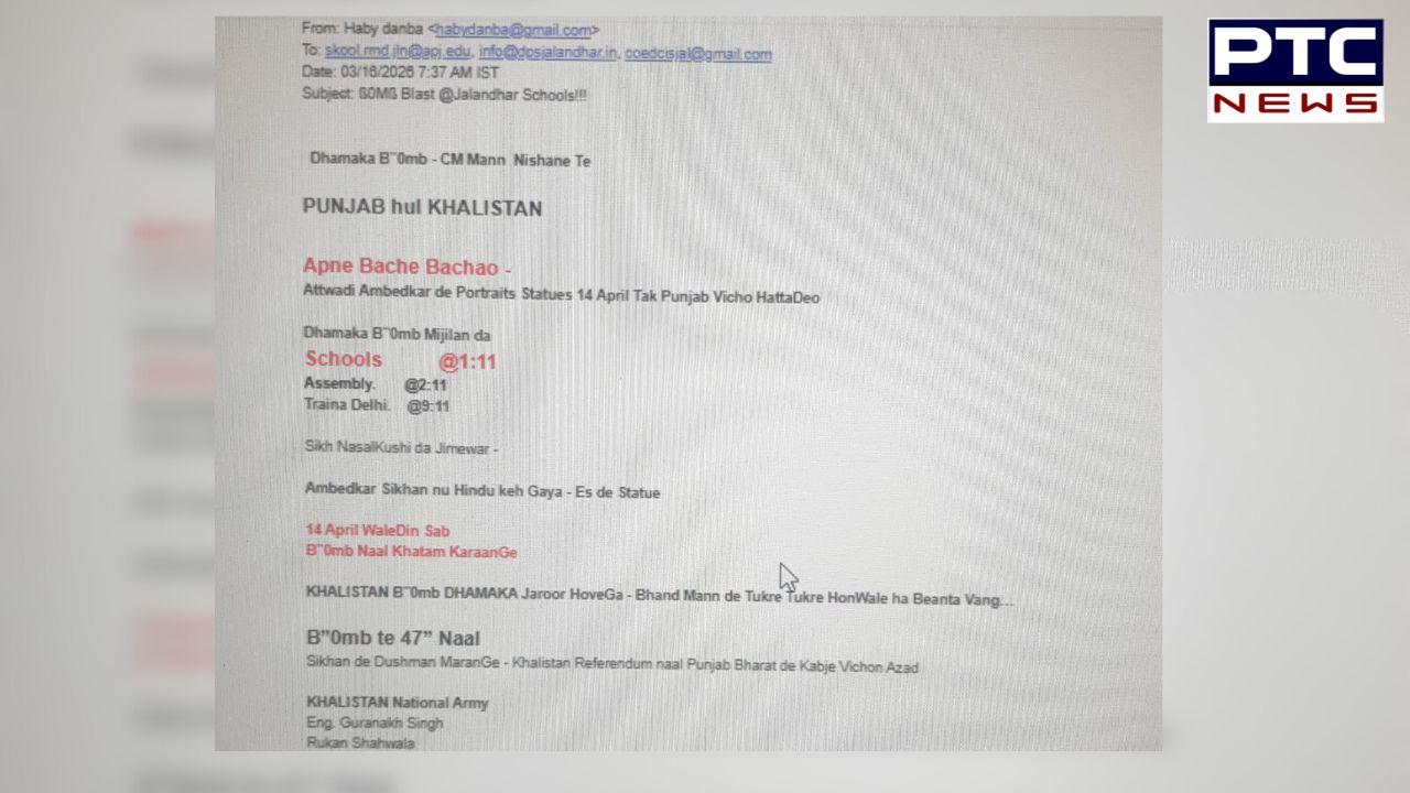 ਦੱਸ ਦਈਏ ਕਿ ਸਕੂਲਾਂ ਨੂੰ ਮੇਲ ਸਵੇਰੇ 7:37 ਵਜੇ ਮਿਲੀ ਹੈ। ਜਿਸ ’ਚ ਕਿਹਾ ਗਿਆ ਹੈ ਕਿ ਮੁੱਖ ਮੰਤਰੀ ਭਗਵੰਤ ਮਾਨ ਨਿਸ਼ਾਨੇ ’ਤੇ ਹਨ। ਪੰਜਾਬ ਨੂੰ ਖਾਲਿਸਤਾਨ ਬਣਾਉਣ ਦਾ ਵੀ ਜਿਕਰ ਕੀਤਾ ਗਿਆ ਹੈ। ਨਾਲ ਹੀ ਕਿਹਾ ਕਿ ਆਪਣੇ ਬੱਚਿਆਂ ਨੂੰ ਬਚਾਓ। ਡਾ ਬੀ.ਆਰ ਅੰਬੋਡਕਰ ਦੇ ਬੁੱਤਾਂ ਨੂੰ 14 ਅਪ੍ਰੈਲ ਤੱਕ ਪੰਜਾਬ ਵਿੱਚੋ ਹਟਾ ਦਿਓ। ਨਹੀਂ ਤਾਂ 14 ਅਪ੍ਰੈਲ ਨੂੰ ਸਾਰੇ ਬੁੱਤਾਂ ਨੂੰ ਬੰਬ ਨਾਲ ਉਡਾਇਆ ਜਾਵੇਗਾ।