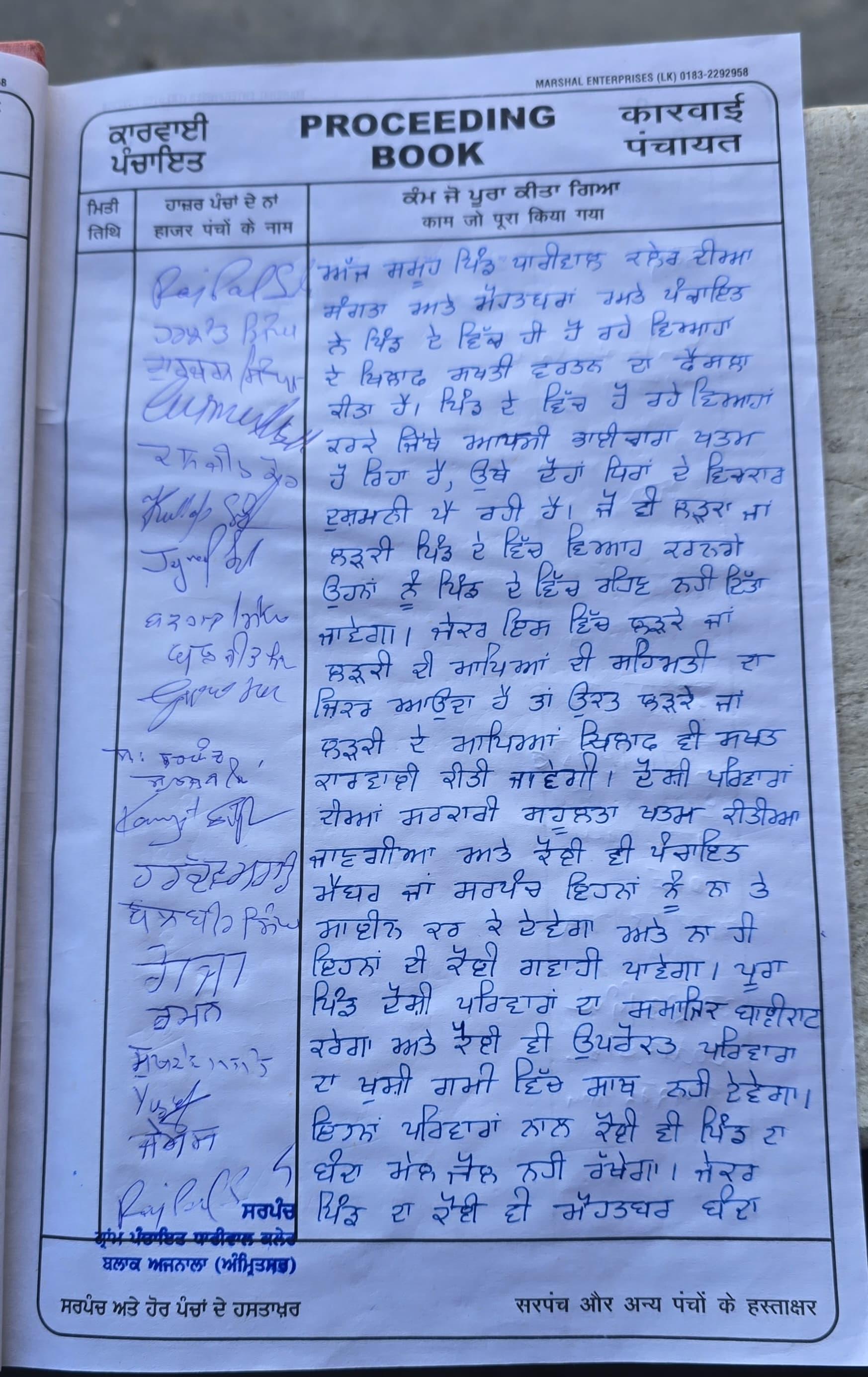 Ajnala : ਪਿੰਡ ਦੇ ਸਰਪੰਚ ਅਤੇ ਹੋਰਨਾਂ ਮੋਹਤਬਰਾਂ ਨੇ ਦੱਸਿਆ ਕਿ ਉਹਨਾਂ ਵੱਲੋਂ ਇਹ ਫੈਸਲਾ ਲਿਆ ਗਿਆ ਹੈ ਕਿ ਜੇਕਰ ਕੋਈ ਵੀ ਪਿੰਡ ਵਾਸੀ ਪਿੰਡ ਵਿੱਚ ਹੀ ਵਿਆਹ ਕਰਾਉਂਦਾ ਹੈ ਤਾਂ ਉਸ ਨੂੰ ਪਿੰਡ 'ਚੋਂ ਬਾਹਰ ਦਾ ਰਸਤਾ ਦਿਖਾਇਆ ਜਾਵੇਗਾ ਤੇ ਉਹਨਾਂ ਦਾ ਸਮਾਜਿਕ ਬਾਈਕਾਟ ਕਰ ਦਿੱਤਾ ਜਾਵੇਗਾ।