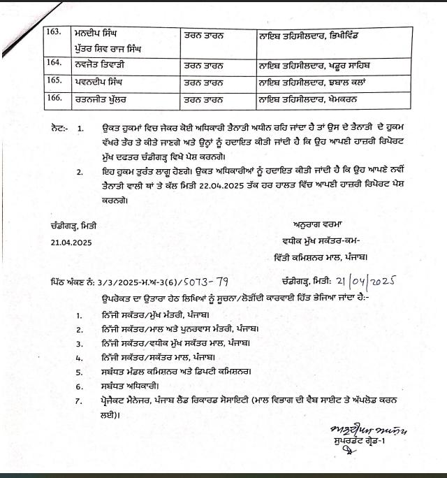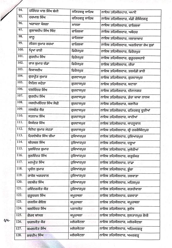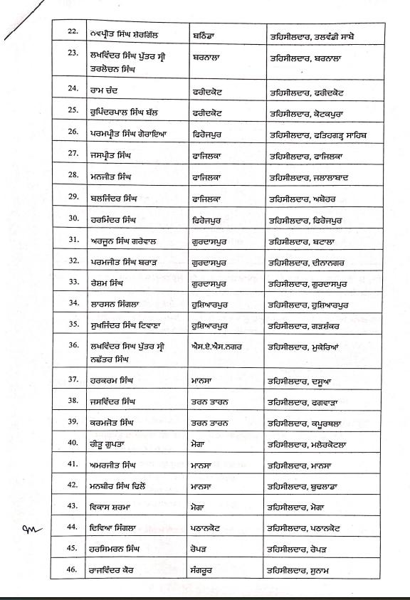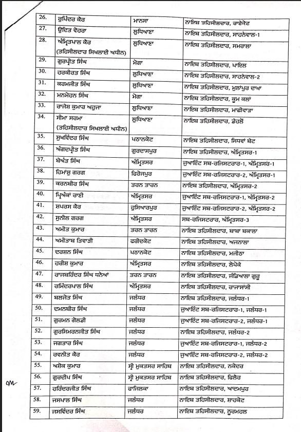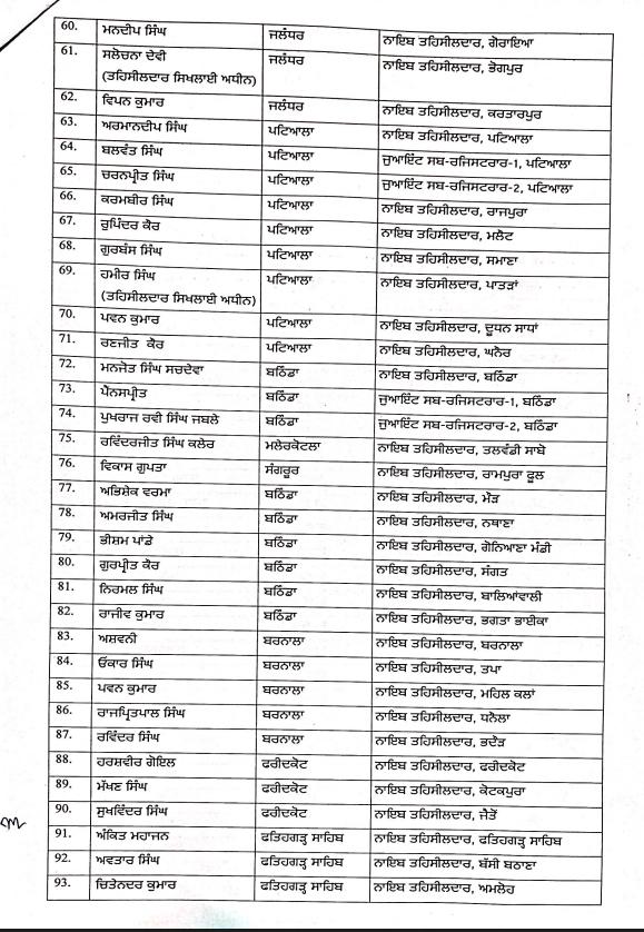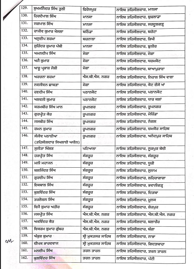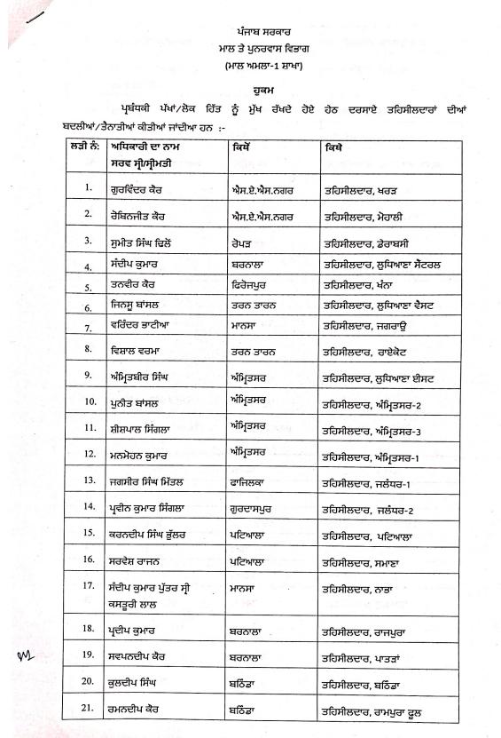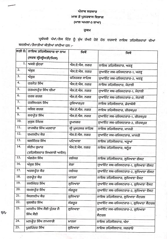 Transfers of Tehsildars and Naib Tehsildars : ਪੰਜਾਬ ਸਰਕਾਰ ਵੱਲੋਂ ਮਾਲ ਵਿਭਾਗ ਵਿੱਚ ਵੱਡਾ ਫੇਰਬਦਲ , ਵੱਡੇ ਪੱਧਰ ਤੇ ਤਹਿਸੀਲਦਾਰਾਂ ਤੇ ਨਾਇਬ ਤਹਿਸੀਲਦਾਰਾਂ ਦੇ ਤਬਾਦਲੇ, ਦੇਖੋ ਲਿਸਟ