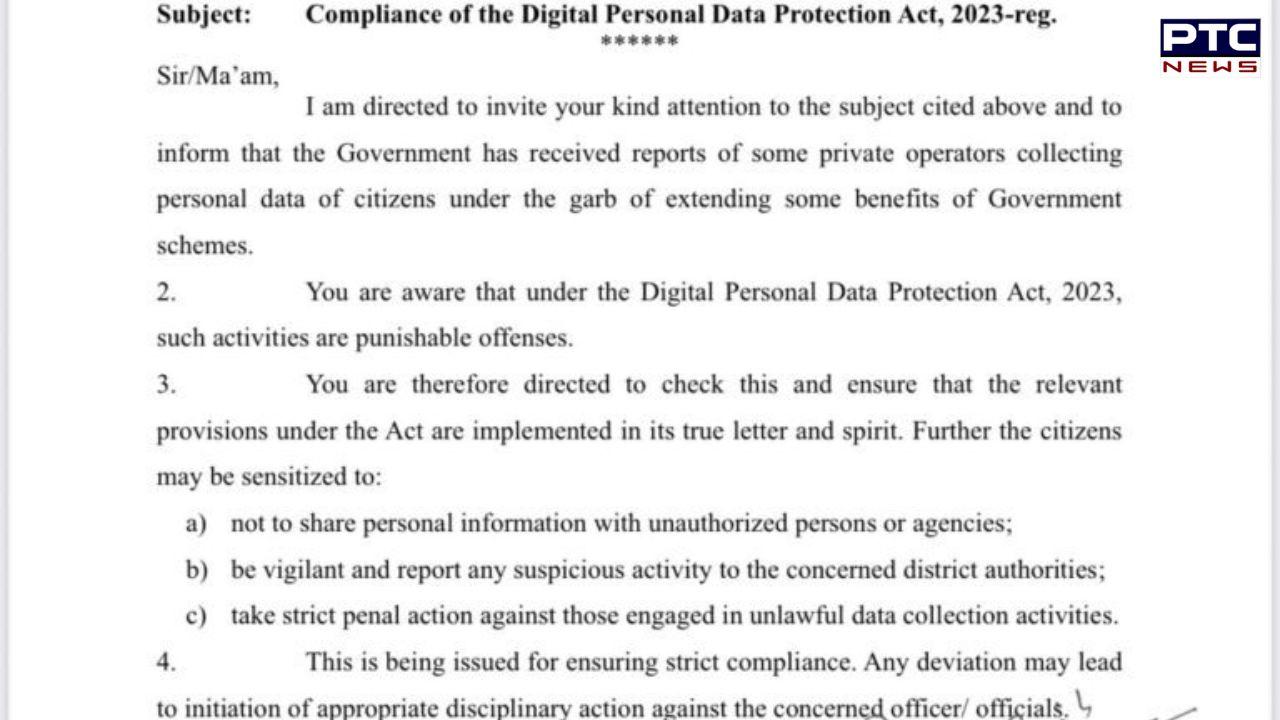 ਚੰਡੀਗੜ੍ਹ : ਪੰਜਾਬ ਸਰਕਾਰ ਐਕਸ਼ਨ ਮੋਡ ਵਿੱਚ ਆ ਗਈ ਹੈ। ਦਰਅਸਲ, ਸਰਕਾਰ ਨੇ ਰਾਜ ਦੇ ਸਾਰੇ ਡਿਪਟੀ ਕਮਿਸ਼ਨਰਾਂ ਨੂੰ ਇੱਕ ਪੱਤਰ ਭੇਜ ਕੇ ਨਿਰਦੇਸ਼ ਜਾਰੀ ਕੀਤੇ ਹਨ ਕਿ ਕਿਸੇ ਵੀ ਵਿਅਕਤੀ ਜਾਂ ਸੰਗਠਨ ਵਿਰੁੱਧ ਤੁਰੰਤ ਸਖ਼ਤ ਕਾਰਵਾਈ ਕੀਤੀ ਜਾਵੇ, ਜੋ ਬਿਨਾਂ ਅਧਿਕਾਰ ਦੇ ਡੇਟਾ ਇਕੱਠਾ ਕਰ ਰਿਹਾ ਹੈ।