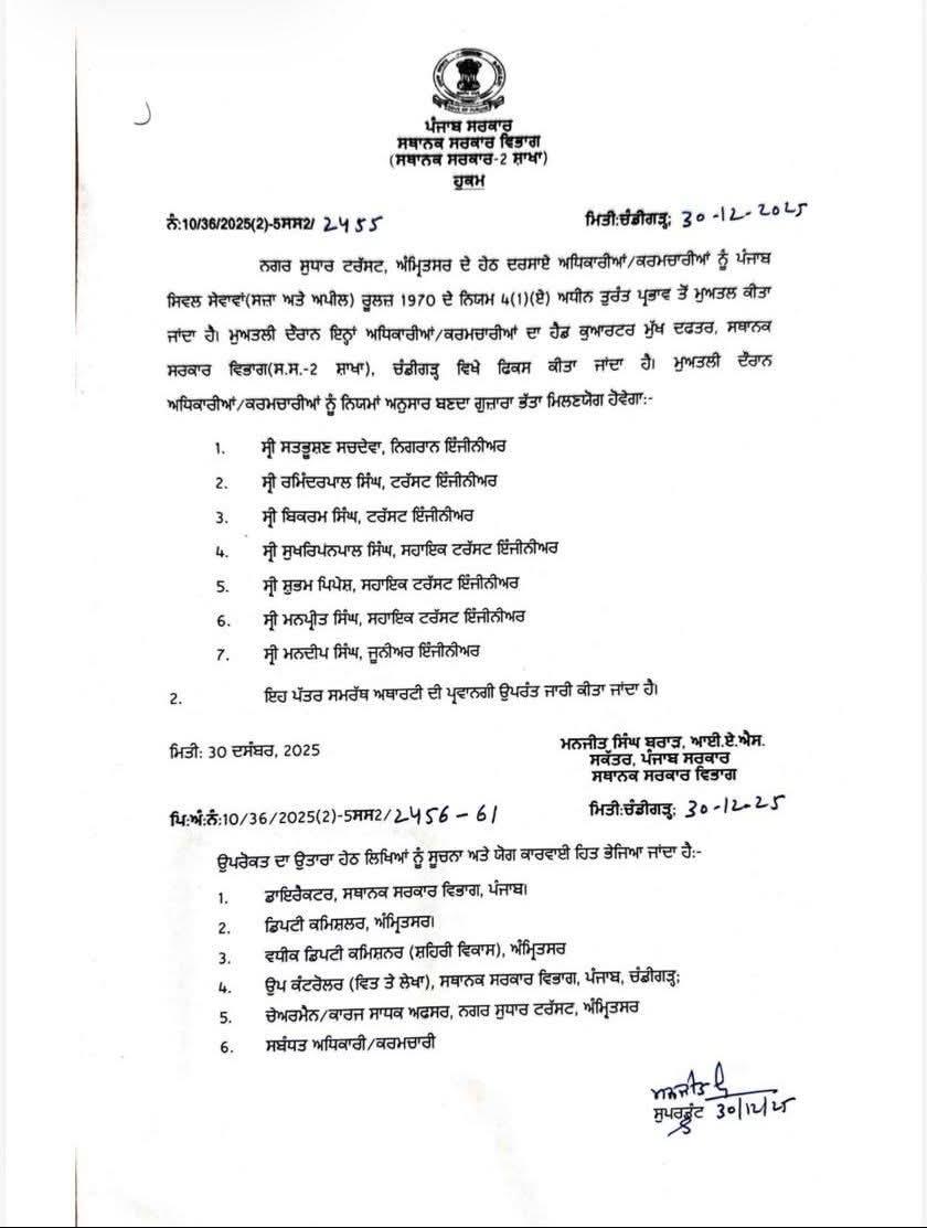 Amritsar Scam : ਰਣਜੀਤ ਐਵੀਨਿਊ ਟੈਂਡਰ ਘਪਲੇ ਚ ਵੱਡਾ ਐਕਸ਼ਨ, ਸਥਾਨਕ ਸਰਕਾਰਾਂ ਵਿਭਾਗ ਦੇ 7 ਅਧਿਕਾਰੀ ਸਸਪੈਂਡ