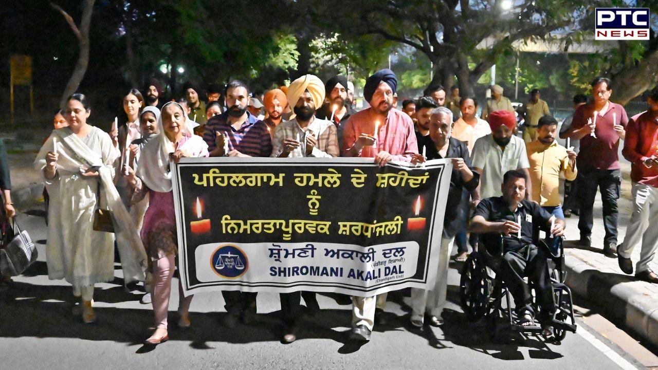 ਸ਼੍ਰੋਮਣੀ ਅਕਾਲੀ ਦਲ ਨੇ ਪਹਿਲਗਾਮ ਅੱਤਵਾਦੀ ਹਮਲੇ ਦੇ ਪੀੜਤਾਂ ਲਈ ਇਨਸਾਫ਼ ਦੀ ਮੰਗ ਨੂੰ ਲੈ ਕੇ ਮੋਮਬੱਤੀ ਮਾਰਚ ਕੱਢਿਆ