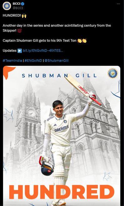 ਇਹ ਇਸ ਲੜੀ ਵਿੱਚ ਗਿੱਲ ਦਾ ਚੌਥਾ ਸੈਂਕੜਾ ਸੀ। ਉਹ ਅਜਿਹਾ ਕਰਨ ਵਾਲਾ ਸਿਰਫ਼ ਤੀਜਾ ਭਾਰਤੀ ਹੈ। ਉਸ ਤੋਂ ਪਹਿਲਾਂ ਸਿਰਫ਼ ਸੁਨੀਲ ਗਾਵਸਕਰ (1971, 1978) ਅਤੇ ਵਿਰਾਟ ਕੋਹਲੀ (2014-15) ਨੇ ਹੀ ਇਹ ਉਪਲਬਧੀ ਹਾਸਲ ਕੀਤੀ ਸੀ। ਉਸ ਨੇ ਡੌਨ ਬ੍ਰੈਡਮੈਨ ਦਾ 86 ਸਾਲ ਪੁਰਾਣਾ ਰਿਕਾਰਡ ਤੋੜਿਆ। ਗਿੱਲ ਹੁਣ ਇੰਗਲੈਂਡ ਵਿੱਚ ਇੱਕ ਟੈਸਟ ਲੜੀ ਵਿੱਚ ਸਭ ਤੋਂ ਵੱਧ ਸੈਂਕੜੇ (4 ਸੈਂਕੜੇ) ਲਗਾਉਣ ਵਾਲਾ ਕਪਤਾਨ ਹੈ। ਬ੍ਰੈਡਮੈਨ ਨੇ 1938 ਦੀ ਐਸ਼ੇਜ਼ ਵਿੱਚ 4 ਸੈਂਕੜੇ ਲਗਾਏ ਸਨ।