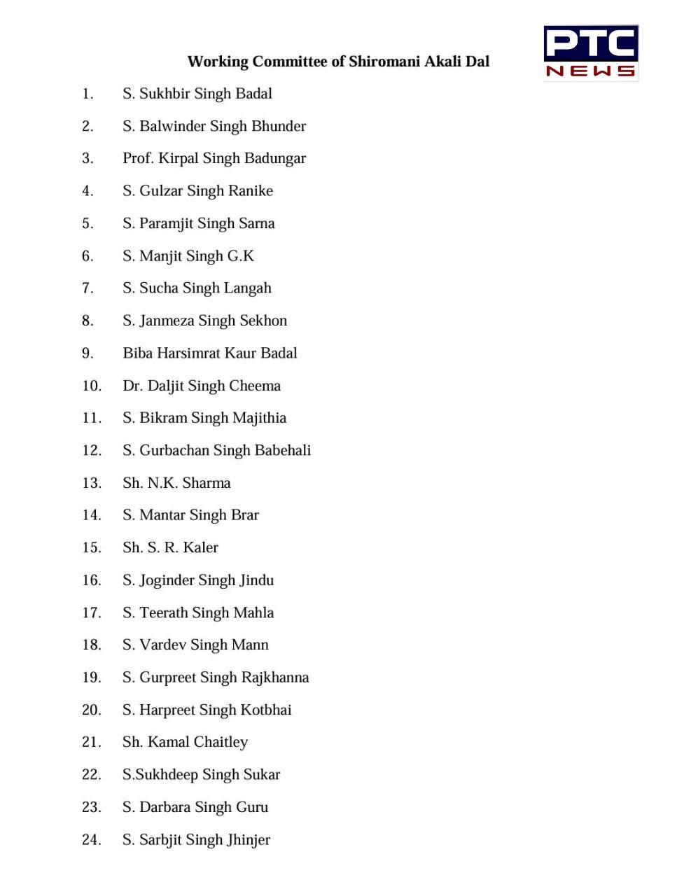 Shiromani Akali Dal : ਸੁਖਬੀਰ ਸਿੰਘ ਬਾਦਲ ਨੇ ਵਰਕਿੰਗ ਕਮੇਟੀ ਦਾ ਕੀਤਾ ਐਲਾਨ , 96 ਮੈਂਬਰਾਂ ਨੂੰ ਵਰਕਿੰਗ ਕਮੇਟੀ ਚ ਕੀਤਾ ਸ਼ਾਮਿਲ ,ਦੇਖੋ ਸੂਚੀ