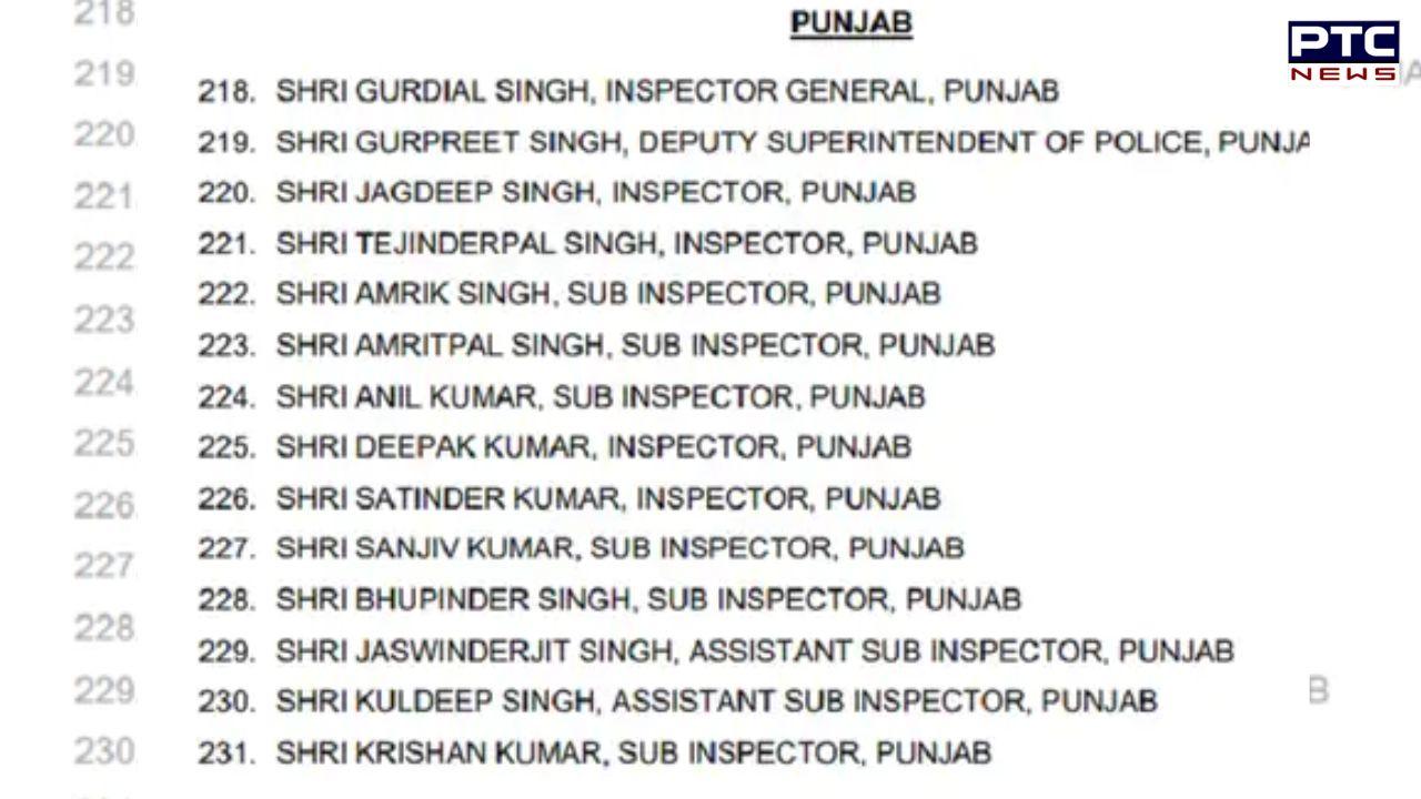 ਜਾਣਕਾਰੀ ਅਨੁਸਾਰ ਰਾਸ਼ਟਰਪਤੀ ਮੈਡਲ ਲਈ ਵਧੀਕ ਡਾਇਰੈਕਟਰ ਜਨਰਲ ਆਫ਼ ਪੁਲਿਸ (ਏਡੀਜੀ) ਪੰਜਾਬ ਮੁਹੰਮਦ ਫਯਾਜ਼ ਫਾਰੂਕੀ ਅਤੇ ਇੰਸਪੈਕਟਰ ਸੁਰੇਸ਼ ਕੁਮਾਰ ਸ਼ਾਮਲ ਹਨ।