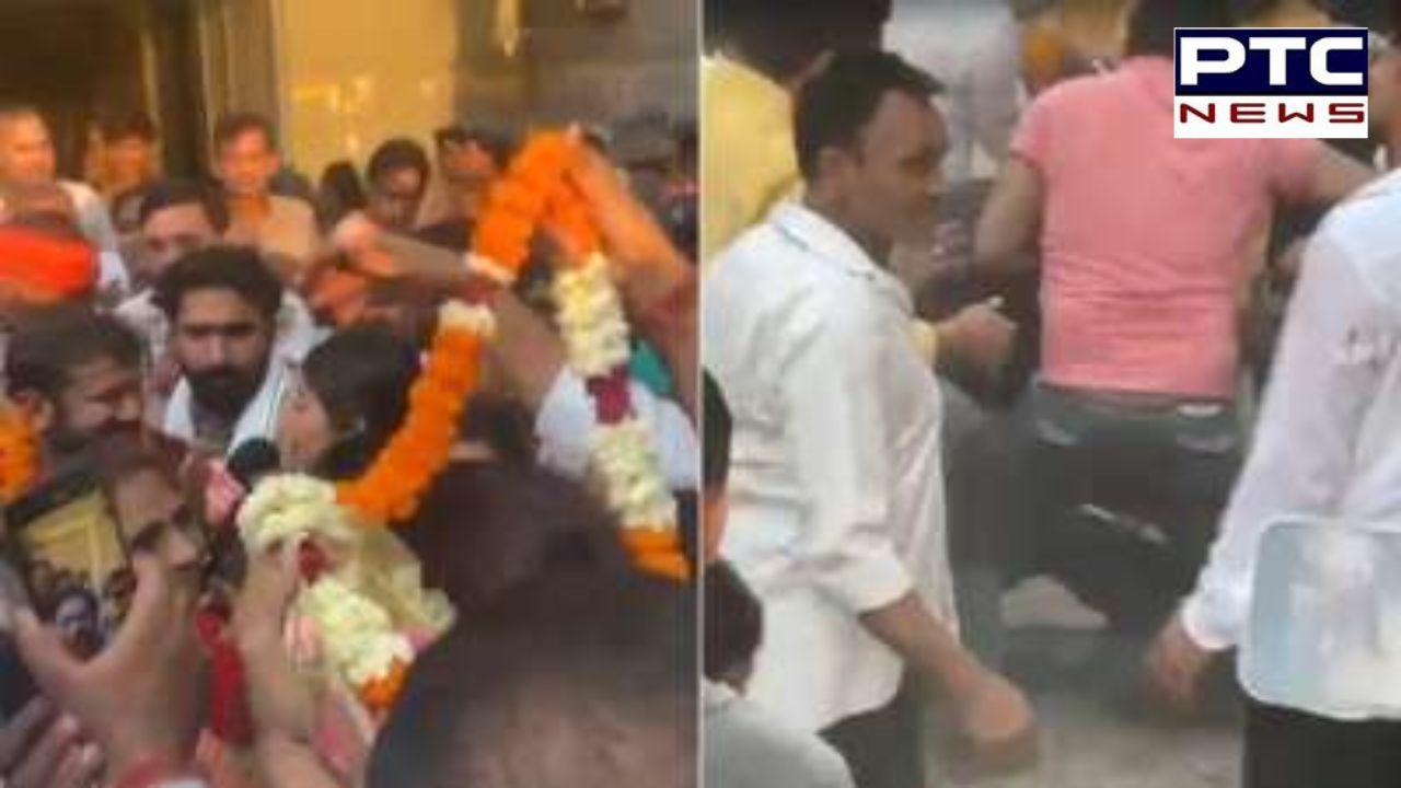 The assaulting videos also depicts that as Congress candidate exited the office, a crowd gathered and initially garlanded him. Amidst this, a young man approached him under the guise of garlanding him but then suddenly slapped him. Others in the crowd threw ink at him. Party workers present at the scene caught and thrashed the young man.