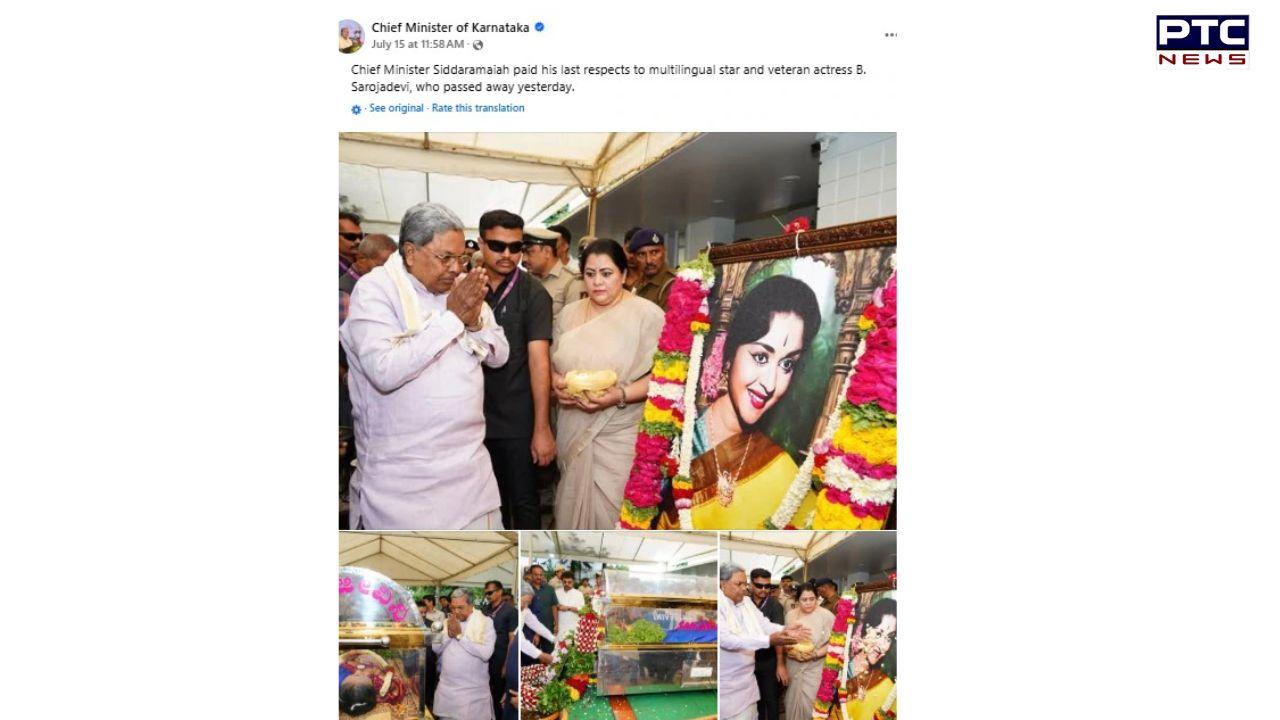 The faulty translation stated: “Chief Minister Siddaramaiah passed away yesterday multilingual star, senior actress B. Took darshan of Sarojadevi's earthly body and paid his last respects.” The glaring inaccuracy quickly drew widespread attention and criticism, especially given the sensitive nature of the message.