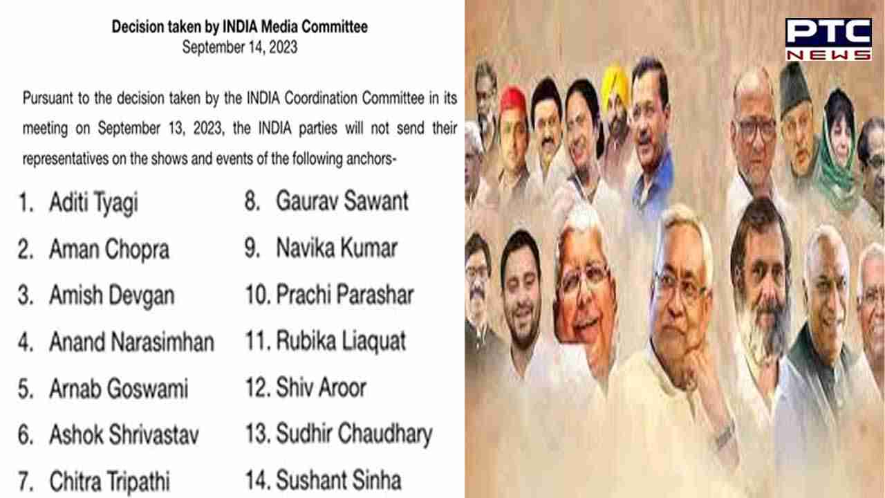 "As per the resolution adopted during the INDIA Coordination Committee meeting held on September 13, 2023, the INDIA parties will abstain from sending their representatives to participate in the programmes and events hosted by the anchors listed below," stated the media committee of the opposition bloc, as it provided the names of these journalists.