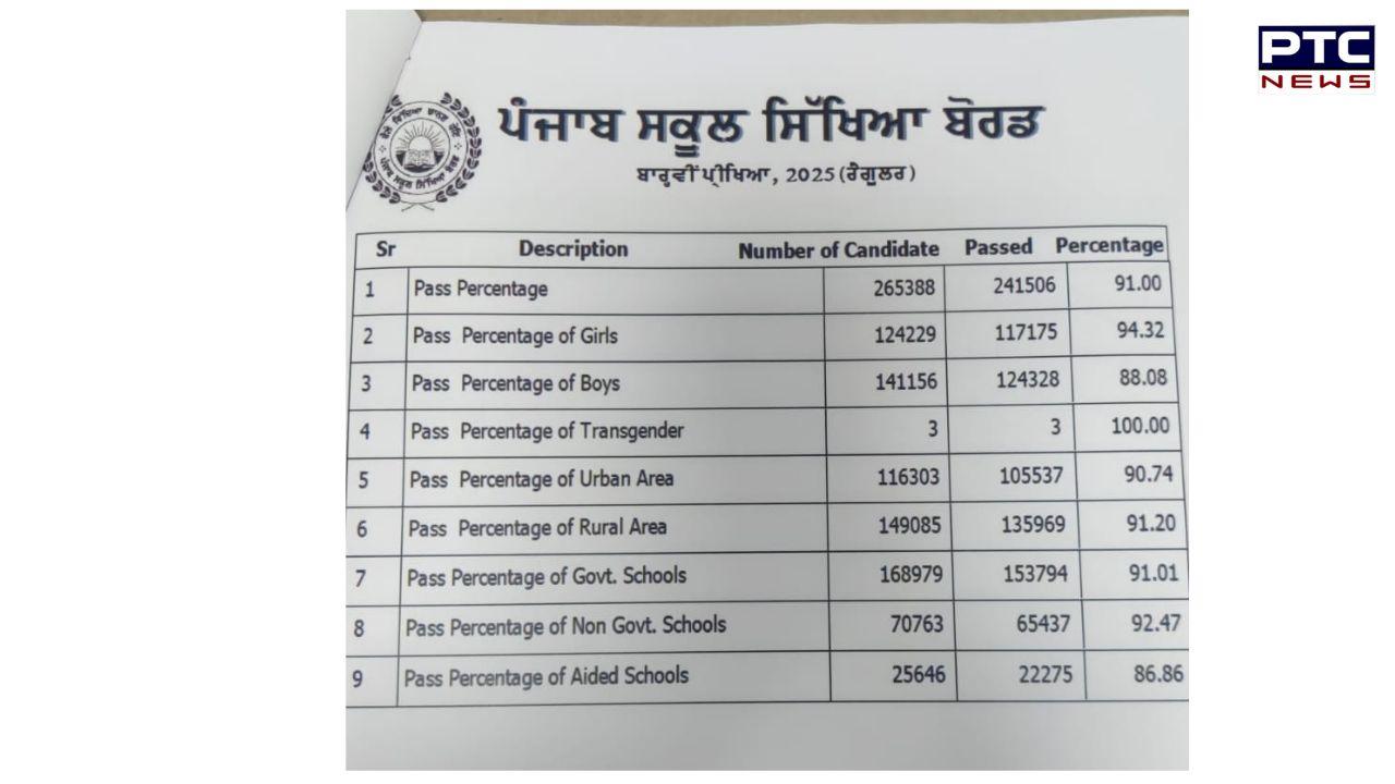 PSEB Class 12 results out: Girls outshine boys; overall pass percentage 91