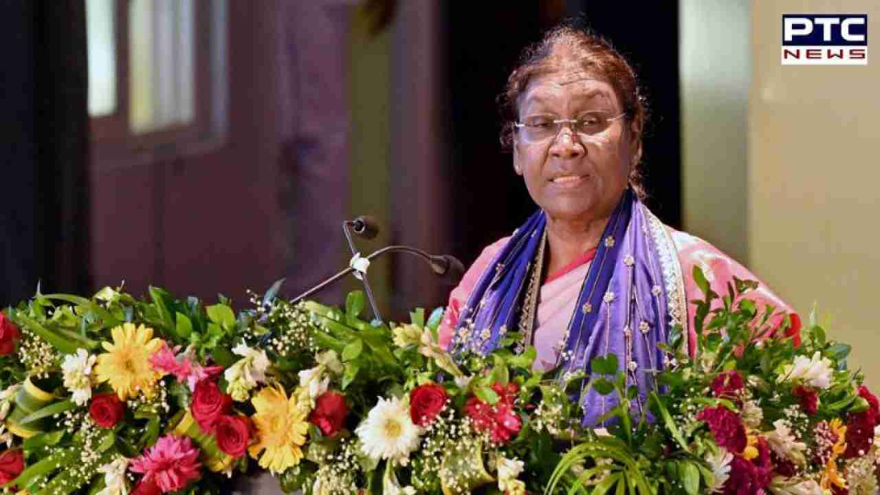 Cuttack, July 27: President Droupadi Murmu addresses the convocation of the National Law University Odisha, in Cuttack on Wednesday. (ANI Photo)