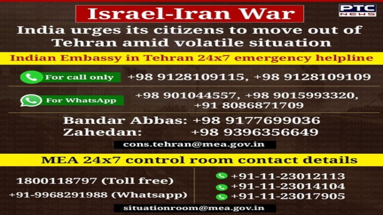 PTC News Desk: India on Tuesday issued fresh advisory urging its nationals and Persons of Indian Origin (PIOs) residing in Tehran to move out of the city as the Iranian capital is under heavy attack from Israeli drones and missiles.
