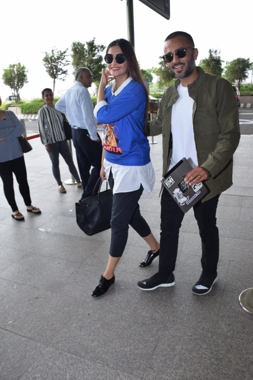 ਅਨਿਲ ਕਪੂਰ ਦੀ ਬੇਟੀ ਮਸ਼ਹੂਰ ਬਾਲੀਵੁੱਡ ਅਦਾਕਾਰਾ ਸੋਨਮ ਕਪੂਰ ਆਪਣੇ ਪਤੀ ਆਨੰਦ ਆਹੂਜਾ ਨਾਲ ਮੁੰਬਈ ਦੇ ਏਅਰਪੋਰਟ ਤੇ ਅਲੱਗ ਅੰਦਾਜ ਵਿੱਚ ਨਜ਼ਰ ਆਈ।