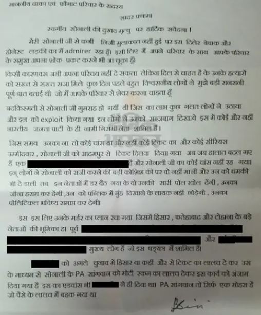 सोनाली फोगाट मर्डर मामले में गुमनाम चिट्ठियों में कई नेताओं के नाम, आज हिसार पहुंच रही CBI