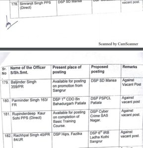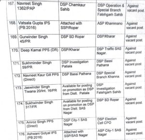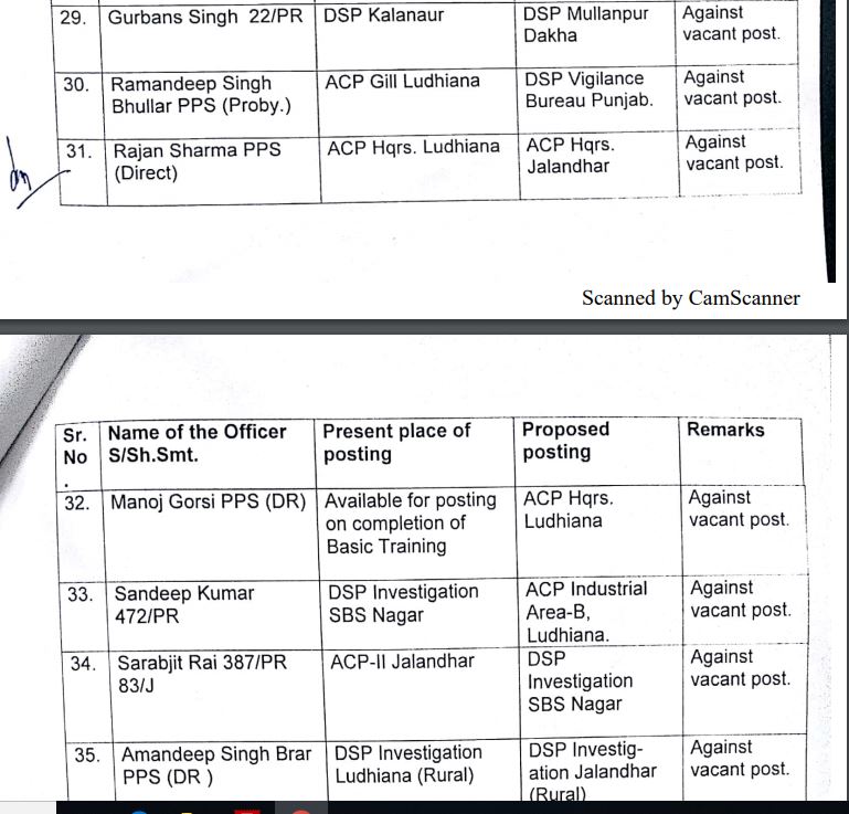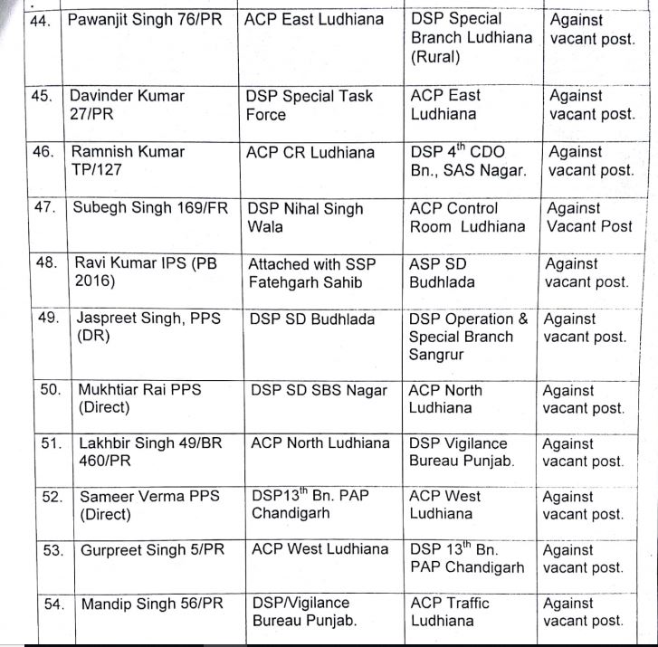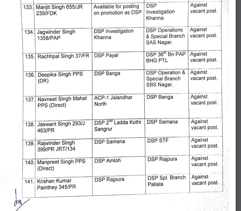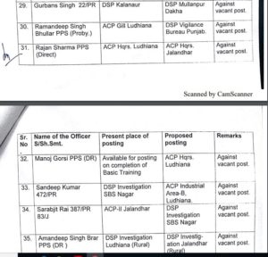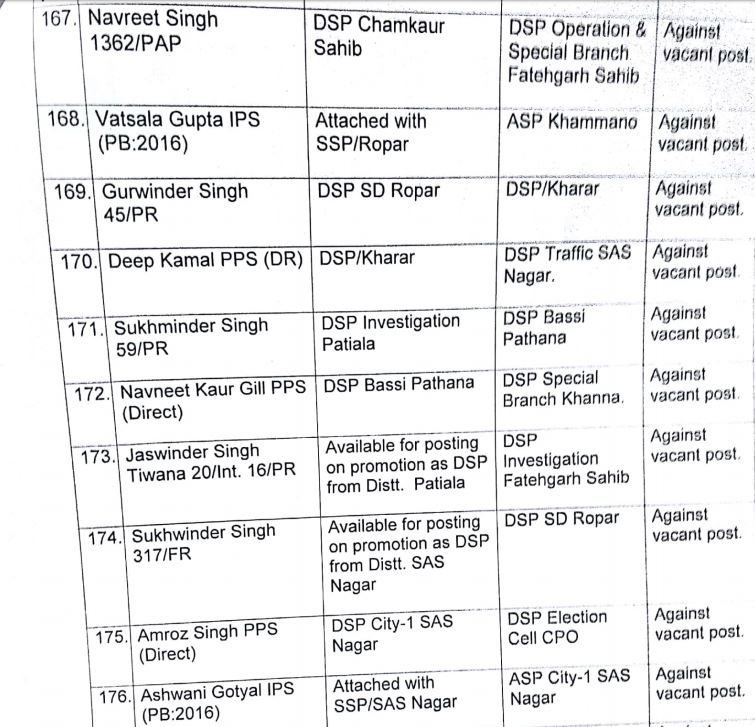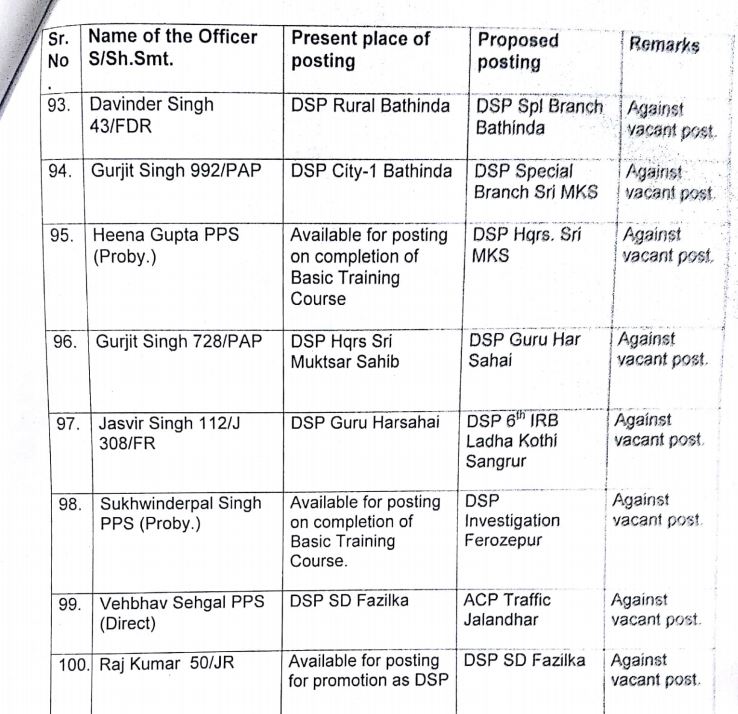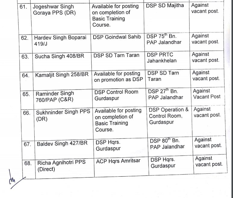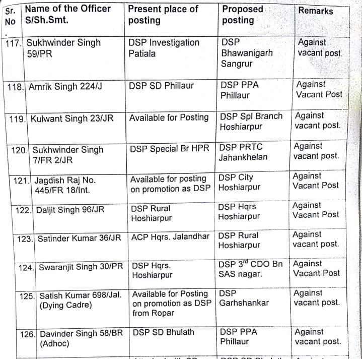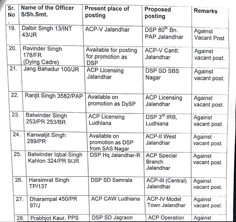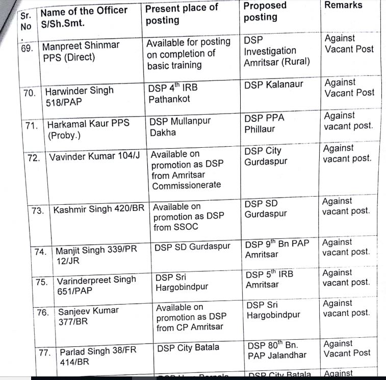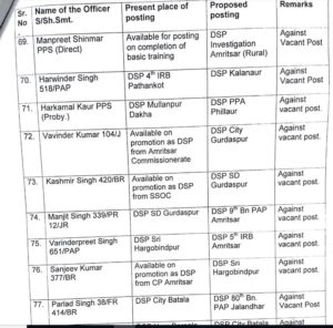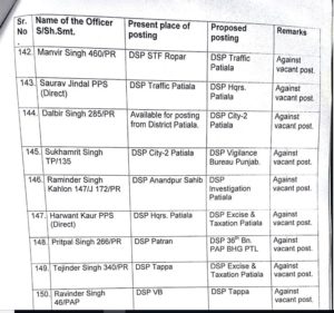 ਜਿਨ੍ਹਾਂ ਅਧਿਕਾਰੀਆਂ ਦੀ ਬਦਲੀ ਹੋਈ ਹੈ ਉਨ੍ਹਾਂ ਦੀ ਸੂਚੀ ਇਸ ਤਰ੍ਹਾਂ ਨਾਲ ਹੈ-