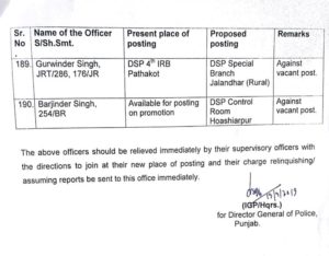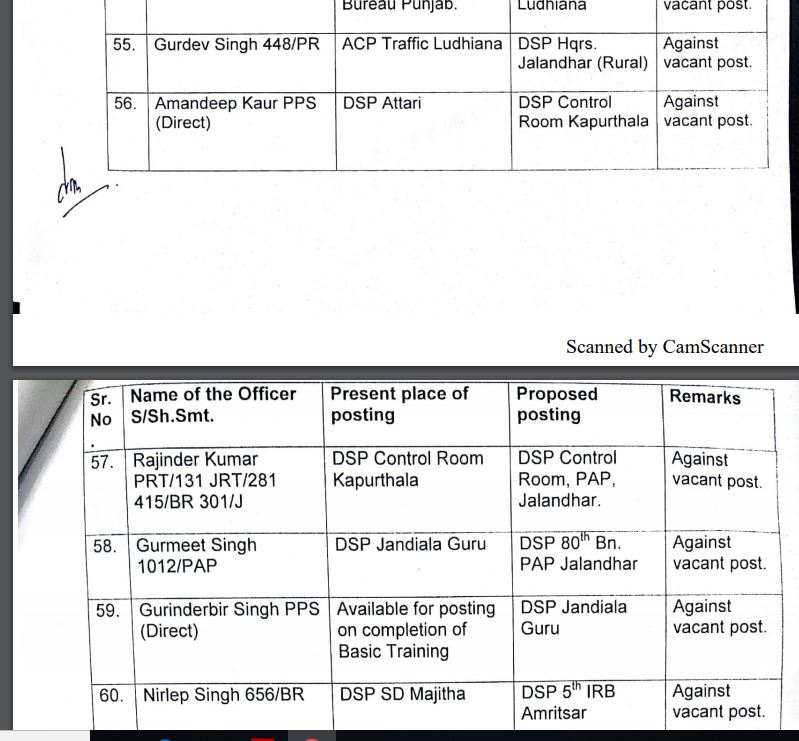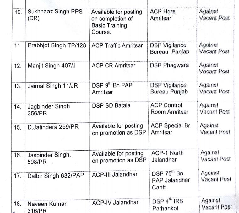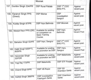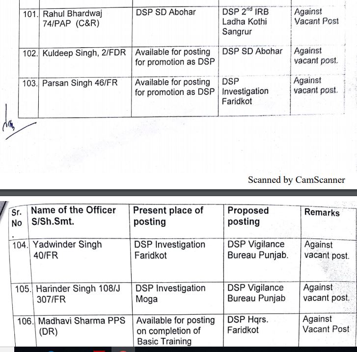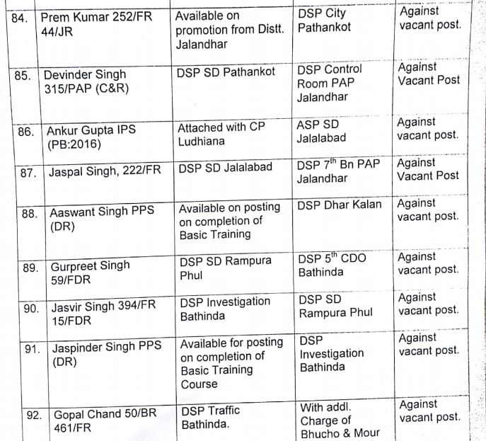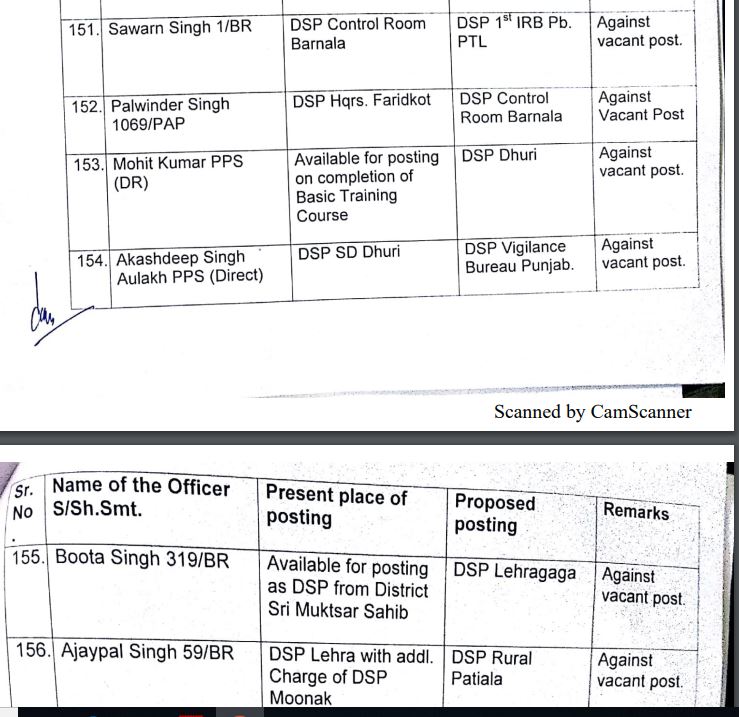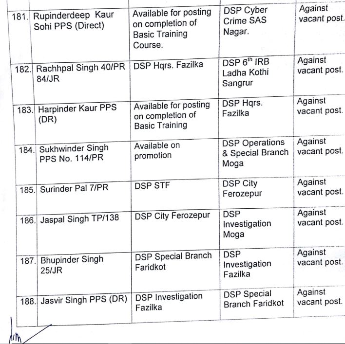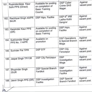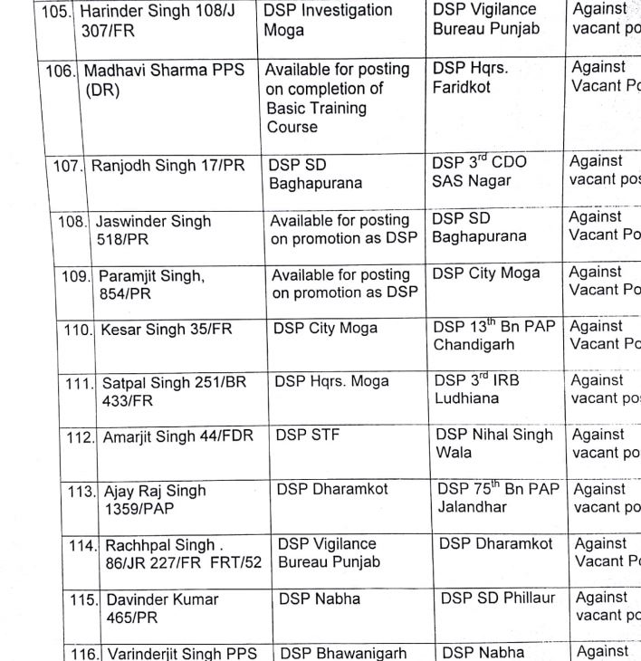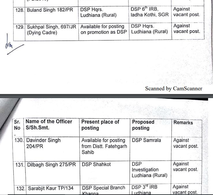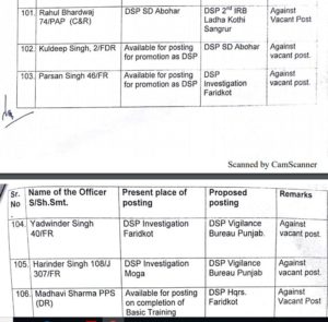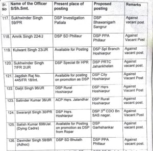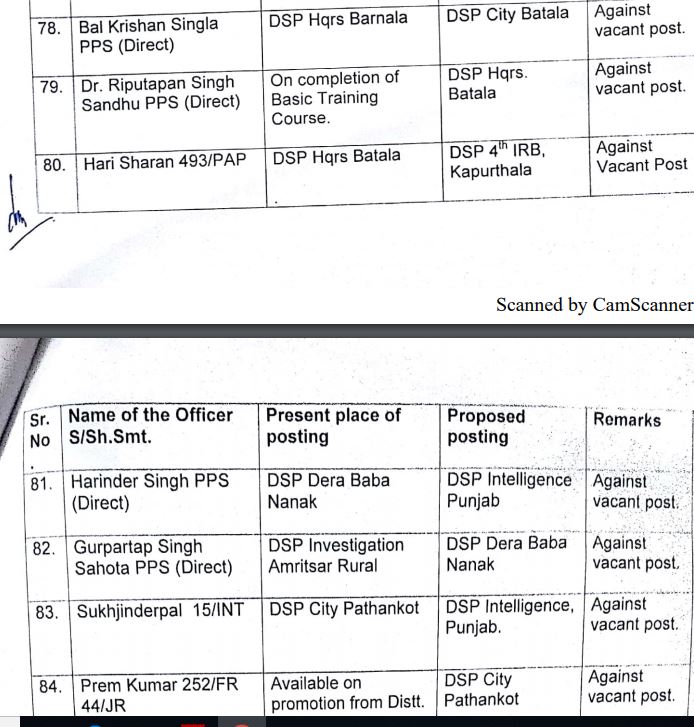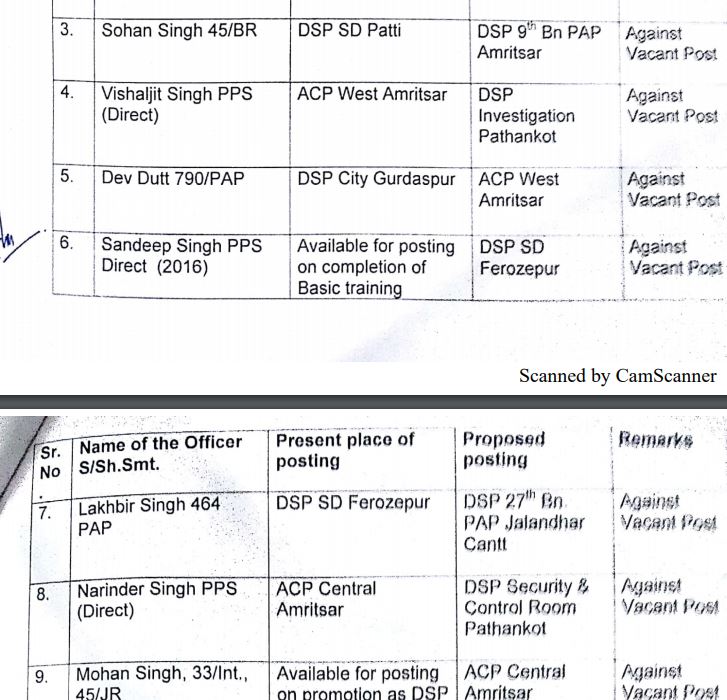 ਜਿਨ੍ਹਾਂ ਅਧਿਕਾਰੀਆਂ ਦੀ ਬਦਲੀ ਹੋਈ ਹੈ ਉਨ੍ਹਾਂ ਦੀ ਸੂਚੀ ਇਸ ਤਰ੍ਹਾਂ ਨਾਲ ਹੈ-
