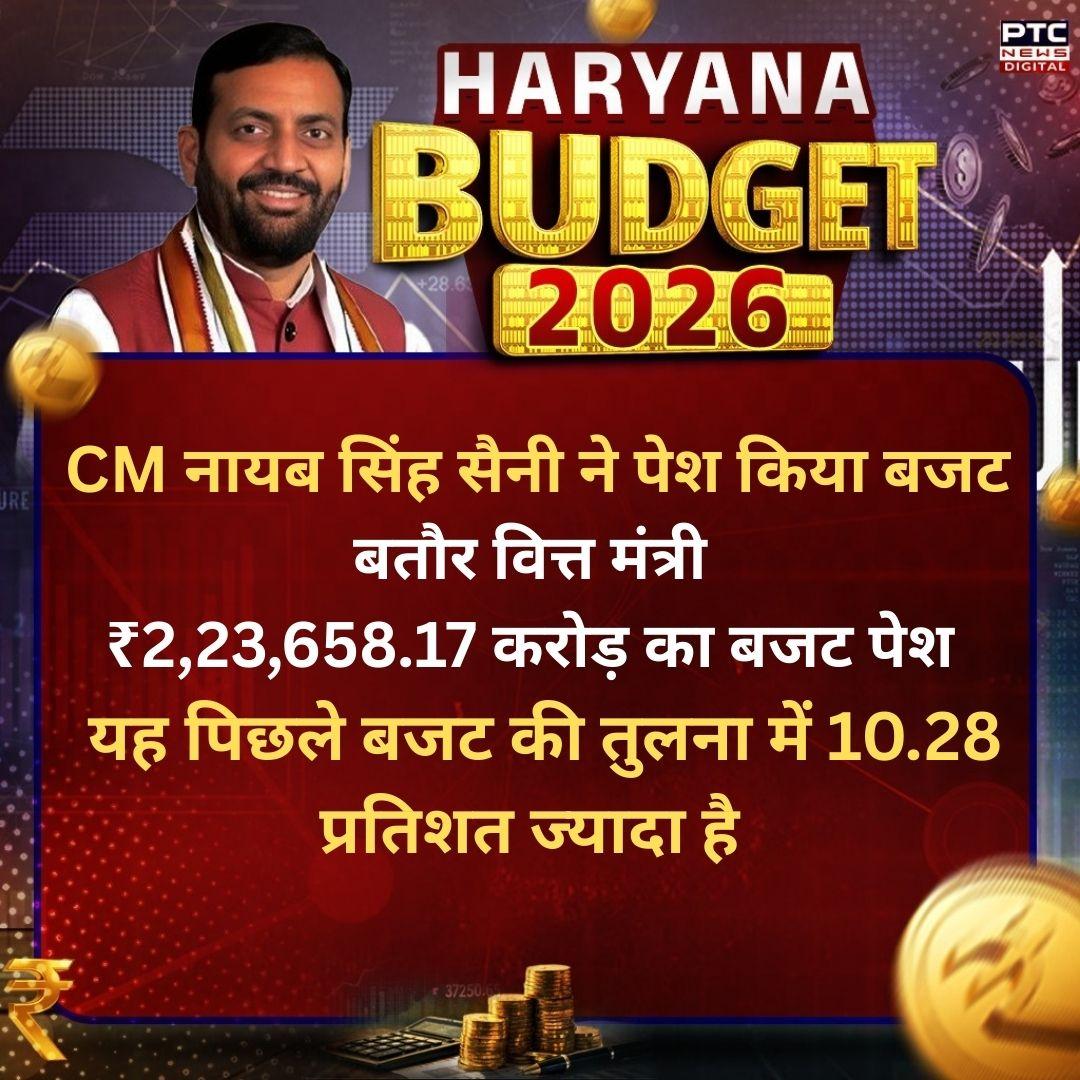CM नायब सैनी ने कहा कि मैं वर्ष 2026-27 के लिए कुल ₹2,23,658.17 करोड़ का बजट प्रस्तावित करता हूं, जो वर्ष 2025-26 के संशोधित आंकड़े ₹2,02,816.66 करोड़ से 10.28% अधिक है।