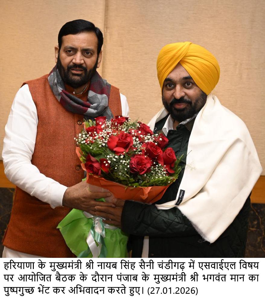 मुख्यमंत्री ने बताया कि दोनों राज्यों ने आपसी सहमति से यह निर्णय लिया है कि एसवाईएल से जुड़े मुद्दे पर आगे विस्तृत चर्चा के लिए सिंचाई विभाग के अधिकारियों के स्तर पर बैठकें आयोजित की जाएंगी, ताकि व्यावहारिक और स्थायी समाधान की दिशा में आगे बढ़ा जा सके।