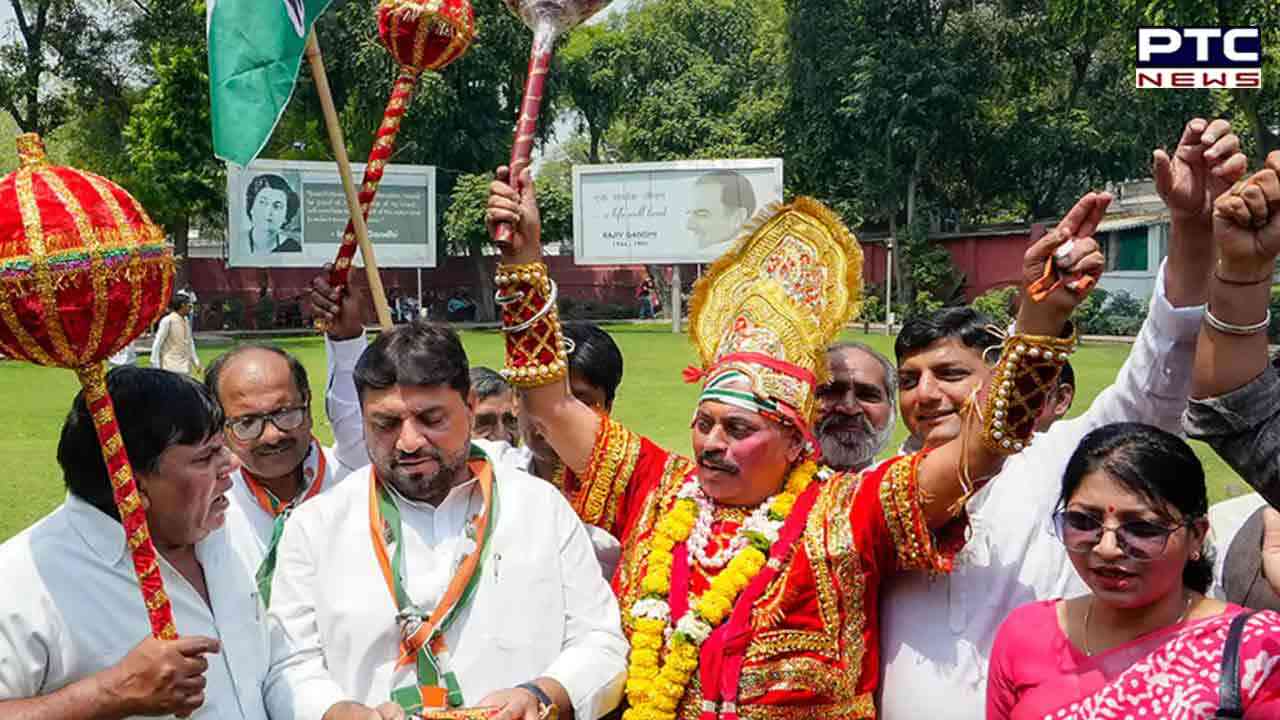 Several Congress workers were seen wearing costumes of Bajrangbali Hanuman, a pointed jibe at the BJP and the right wing. One worker, dressed as Hanuman, proclaimed, "Bajrangbali is not with the BJP, but with the Congress. He has levied a fine on the BJP."