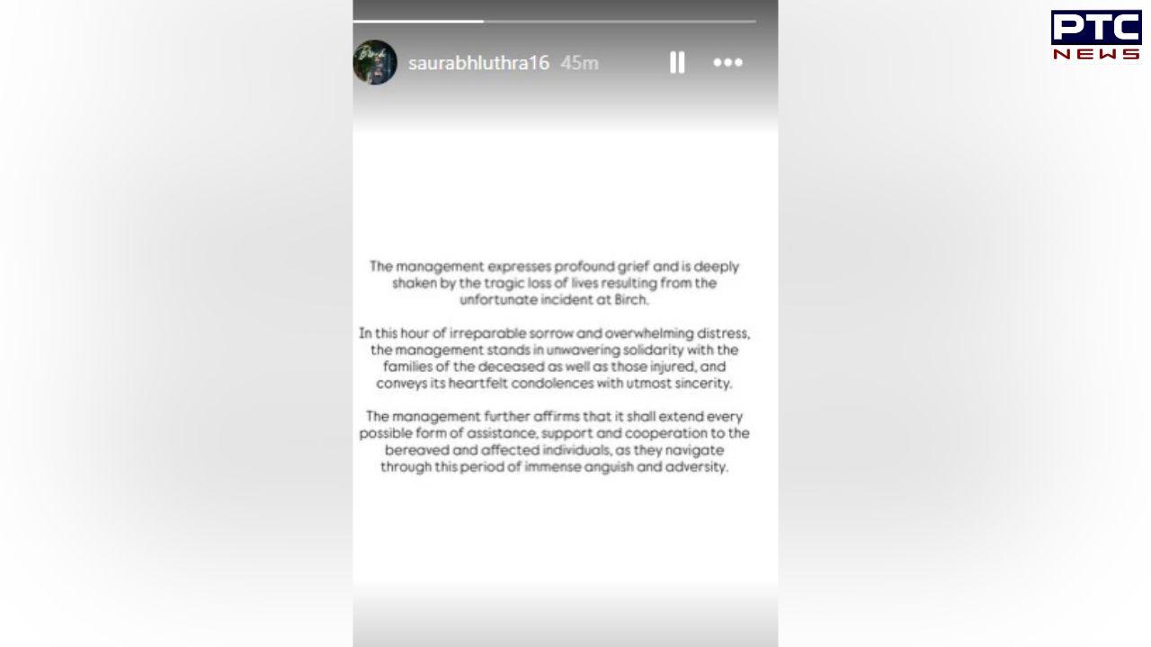 "The management expresses profound grief and is deeply shaken by the tragic loss of lives resulting from the unfortunate incident at Birch. In this hour of irreparable sorrow and overwhelming distress, the management stands in unwavering solidarity with the families of the deceased as well as those injured, and conveys its heartfelt condolences with utmost sincerity," he posted on Instagram.