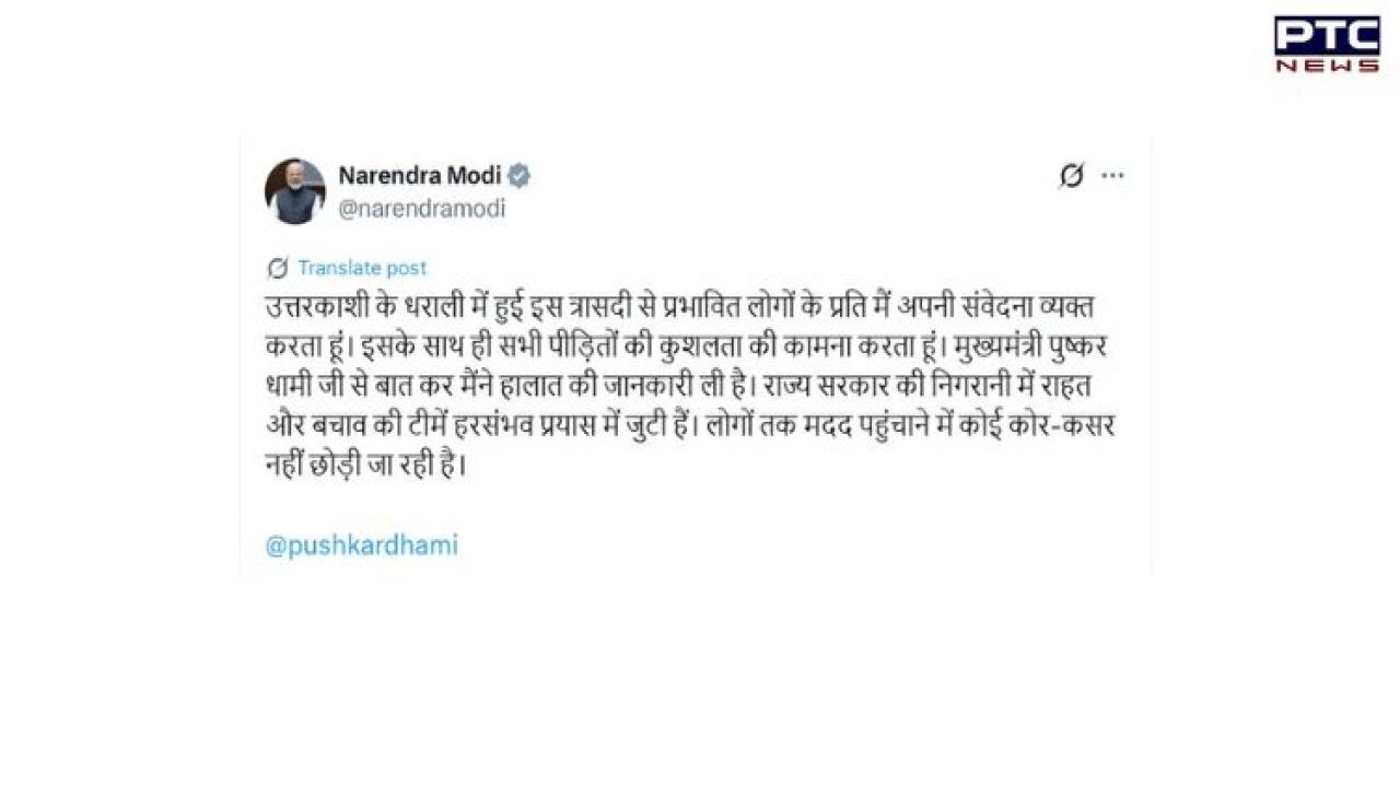 “I express my condolences to the people affected by this tragedy in Dharali, Uttarkashi. Along with this, I pray for the well-being of all the victims. I have spoken to Chief Minister Pushkar Dhami ji and obtained information about the situation,” he wrote.