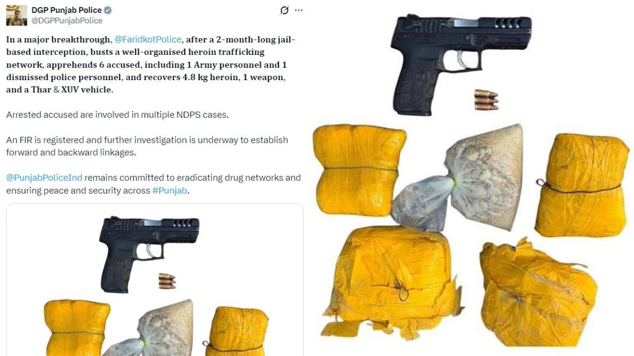 Faridkot News : ਪੰਜਾਬ ਦੇ ਫਰੀਦਕੋਟ 'ਚ ਪੁਲਿਸ ਨੇ ਨਸ਼ਾ ਤਸਕਰੀ ਦੇ ਇੱਕ ਵੱਡੇ ਨੈਟਵਰਕ ਦਾ ਪਰਦਾਫਾਸ਼ ਕੀਤਾ ਹੈ, ਜਿਸ ਵਿੱਚ ਭਾਰਤੀ ਫੌਜ ਦਾ ਇੱਕ ਜਵਾਨ ਤੇ ਇੱਕ ਬਰਖਾਸਤ ਪੁਲਿਸ ਮੁਲਾਜ਼ਮ ਵੀ ਸ਼ਾਮਲ ਹਨ।