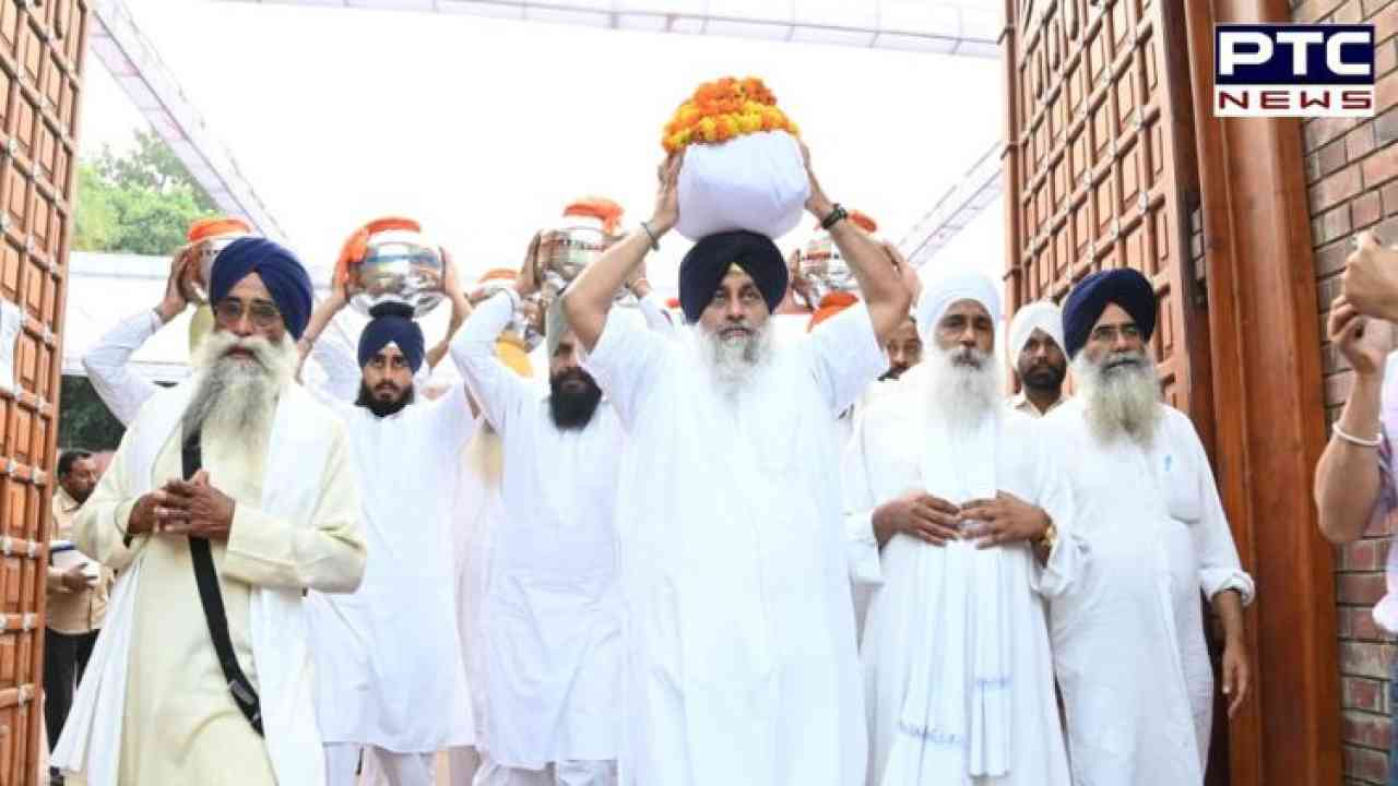 ਆਪਣੇ ਪਿਤਾ ਜੀ ਸਰਦਾਰ ਪ੍ਰਕਾਸ਼ ਸਿੰਘ ਜੀ ਦੇ ਫੁੱਲਾਂ ਨੂੰ ਸਿਰ 'ਤੇ ਸ਼ਸ਼ੋਭਿਤ ਕਰਕੇ ਸ੍ਰੀ ਕੀਰਤਪੁਰ ਸਾਹਿਬ ਲਈ ਘਰੋਂ ਨਿਕਲਦੇ ਹੋਏ ਸਰਦਾਰ ਸੁਖਬੀਰ ਸਿੰਘ ਬਾਦਲ