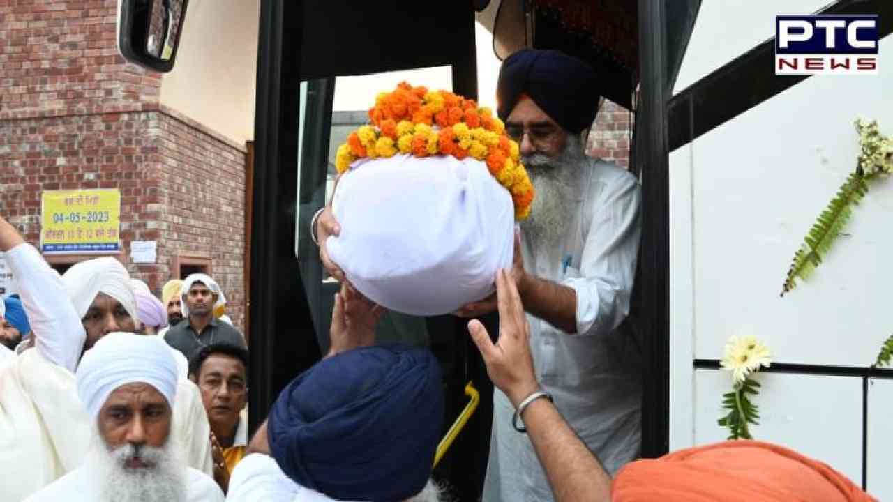 ਸ. ਪ੍ਰਕਾਸ਼ ਸਿੰਘ ਬਾਦਲ ਦੇ ਫੁੱਲਾਂ ਨੂੰ ਗੁਰੂ ਚਰਨਾਂ 'ਚ ਅਰਪਣ ਕਰਨ ਲਈ ਜਾਂਦੇ ਹੋਏ ਰਿਸ਼ਤੇਦਾਰ ਅਤੇ ਸਕੇ ਸਬੰਧੀਆਂ ਨਾਲ ਭਰੀ ਬੱਸ