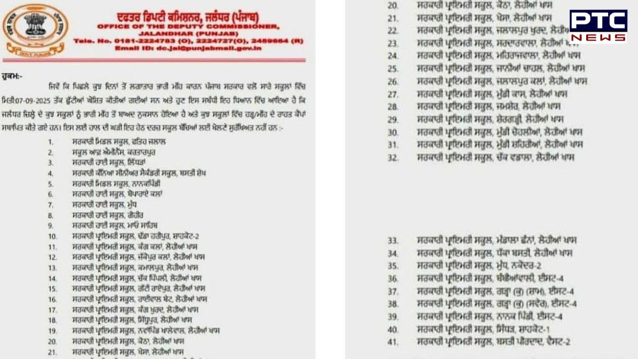 Jalandhar School Holiday : ਜਲੰਧਰ ਦੇ 41 ਸਕੂਲਾਂ 'ਚ ਦੋ ਦਿਨ ਹੋਰ ਛੁੱਟੀ ਦਾ ਐਲਾਨ, ਵੇਖੋ ਸਕੂਲਾਂ ਦੀ ਸੂਚੀ
