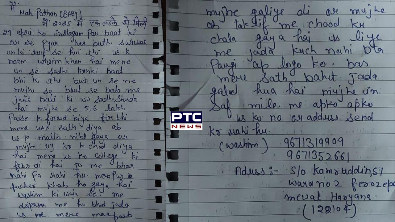 Chandigarh 'ਚ ਲਾਅ ਵਿਦਿਆਰਥਣ ਵੱਲੋਂ ਜੀਵਨਲੀਲ੍ਹਾ ਸਮਾਪਤ, ਮਾਹੀ ਨੇ ਸੁਸਾਇਡ ਨੋਟ 'ਚ ਹਰਿਆਣਾ ਦੇ ਨੌਜਵਾਨ 'ਤੇ ਲਾਏ ਇਲਜ਼ਾਮ