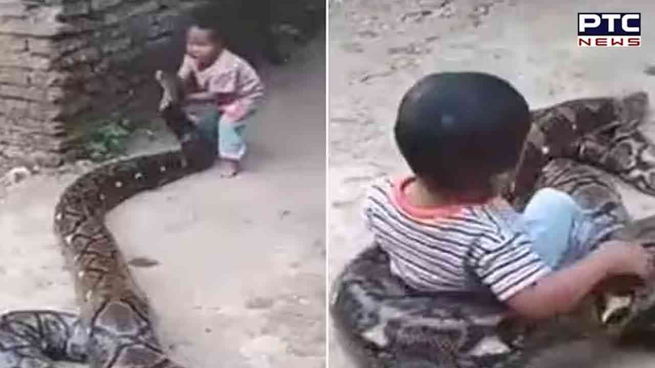 ਇੰਟਰਨੈੱਟ 'ਤੇ ਜਿਸ ਨੇ ਵੀ ਇਸ ਵੀਡੀਓ ਨੂੰ ਦੇਖਿਆ, ਉਹ ਦੰਦਾਂ ਹੇਠ ਉਂਗਲ ਦਬਾਉਣ ਲਈ ਮਜ਼ਬੂਰ ਹੋ ਗਿਆ। ਦਰਅਸਲ ਵਾਇਰਲ ਵੀਡੀਓ ਕਲਿੱਪ 'ਚ ਇੱਕ ਛੋਟਾ ਬੱਚਾ ਇੱਕ ਵਿਸ਼ਾਲ ਅਜਗਰ ਦੇ ਉੱਪਰ ਖੇਡਦਾ ਦਿਖਾਈ ਦੇ ਰਿਹਾ ਹੈ। ਇਹ ਸੱਚਮੁੱਚ ਹੈਰਾਨੀਜਨਕ ਦ੍ਰਿਸ਼ ਹੈ। ਤੁਸੀਂ ਦੇਖ ਸਕਦੇ ਹੋ ਕਿ ਸੱਪ ਕਿੰਨਾ ਖ਼ਤਰਨਾਕ ਲੱਗ ਰਿਹਾ ਹੈ।