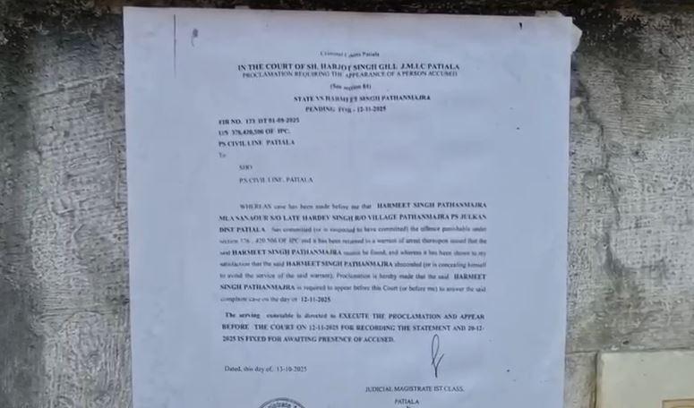 AAP ਵਿਧਾਇਕ ਹਰਮੀਤ ਸਿੰਘ ਪਠਾਣਮਾਜਰਾ ਦੀਆਂ ਮੁਸ਼ਕਿਲਾਂ 'ਚ ਵਾਧਾ, ਅਦਾਲਤ ਨੇ 30 ਦਿਨਾਂ 'ਚ ਪੇਸ਼ ਹੋਣ ਨੂੰ ਲੈ ਕੇ ਜਾਰੀ ਕੀਤਾ ਨੋਟਿਸ
