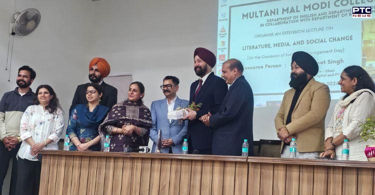 Multani Mal Modi college Patiala : ਰਾਸ਼ਟਰੀ ਪ੍ਰਬੰਧਨ ਦਿਵਸ ਦੇ ਮੌਕੇ 'ਤੇ ਮੁਲਤਾਨੀ ਮੱਲ ਮੋਦੀ ਕਾਲਜ ਵਿਖੇ "ਸਾਹਿਤ, ਮੀਡੀਆ ਅਤੇ ਸਮਾਜਿਕ ਤਬਦੀਲੀ" ਵਿਸ਼ੇ 'ਤੇ ਇਕ ਐਕਸਟੈਨਸ਼ਨ ਲੈਕਚਰ ਦਾ ਆਯੋਜਨ ਕੀਤਾ ਗਿਆ। ਇਹ ਸਮਾਗਮ ਅੰਗਰੇਜ਼ੀ, ਪੱਤਰਕਾਰੀ ਅਤੇ ਵਪਾਰ ਪ੍ਰਬੰਧਨ ਵਿਭਾਗਾਂ ਦੁਆਰਾ ਸਾਂਝੇ ਤੌਰ 'ਤੇ ਆਯੋਜਿਤ ਕੀਤਾ ਗਿਆ ਸੀ। ਮੁੱਖ ਭਾਸ਼ਣ ਹਰਪ੍ਰੀਤ ਸਿੰਘ ਸਾਹਨੀ, ਸੀਈਓ ਅਤੇ ਪੀਟੀਸੀ ਨਿਊਜ਼, ਪੀਟੀਸੀ ਡਿਜੀਟਲ ਅਤੇ ਪੀਟੀਸੀ ਸਿਮਰਨ ਦੇ ਮੁੱਖ ਸੰਪਾਦਕ ਨੇ ਦਿੱਤਾ। ਸੈਸ਼ਨ ਨੇ ਸਾਹਿਤ, ਮੀਡੀਆ ਅਤੇ ਸਮਾਜ ਨੂੰ ਰੂਪ ਦੇਣ ਵਿੱਚ ਉਨ੍ਹਾਂ ਦੀ ਭੂਮਿਕਾ ਦੇ ਵਿਚਕਾਰ ਡੂੰਘੇ ਸਬੰਧਾਂ 'ਤੇ ਕੇਂਦਰਿਤ ਕੀਤਾ।